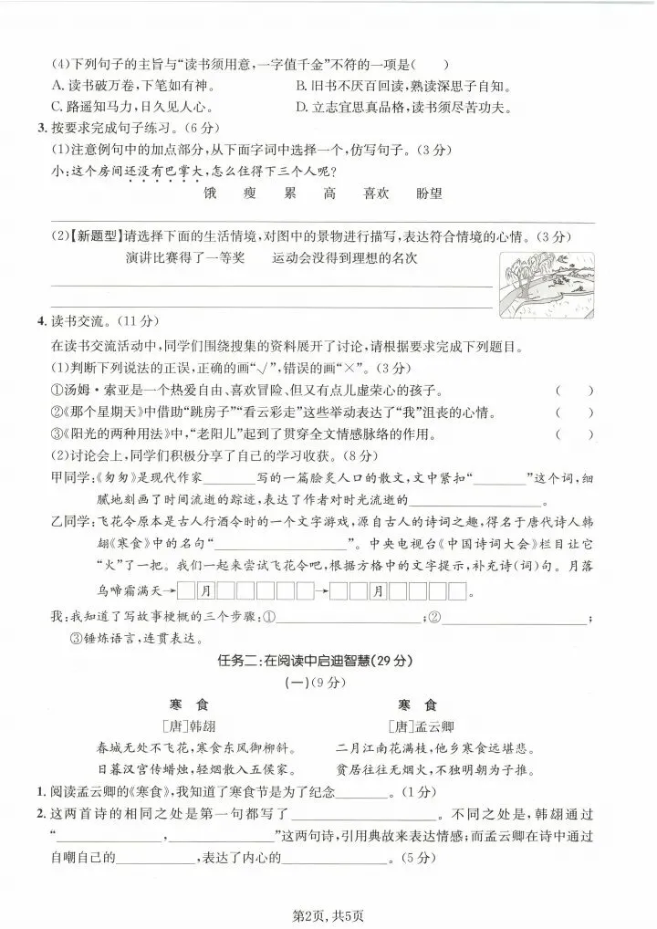 六年级下册语文期中测试卷|完整电子档可下载打印!