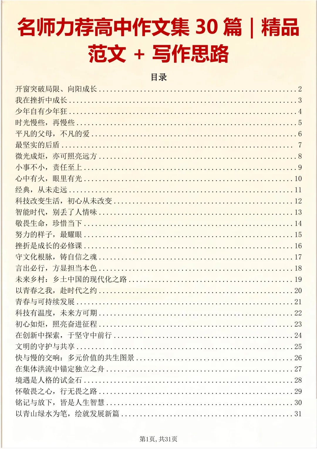 本篇文章一共 30 篇,完整版可打印↓↓↓