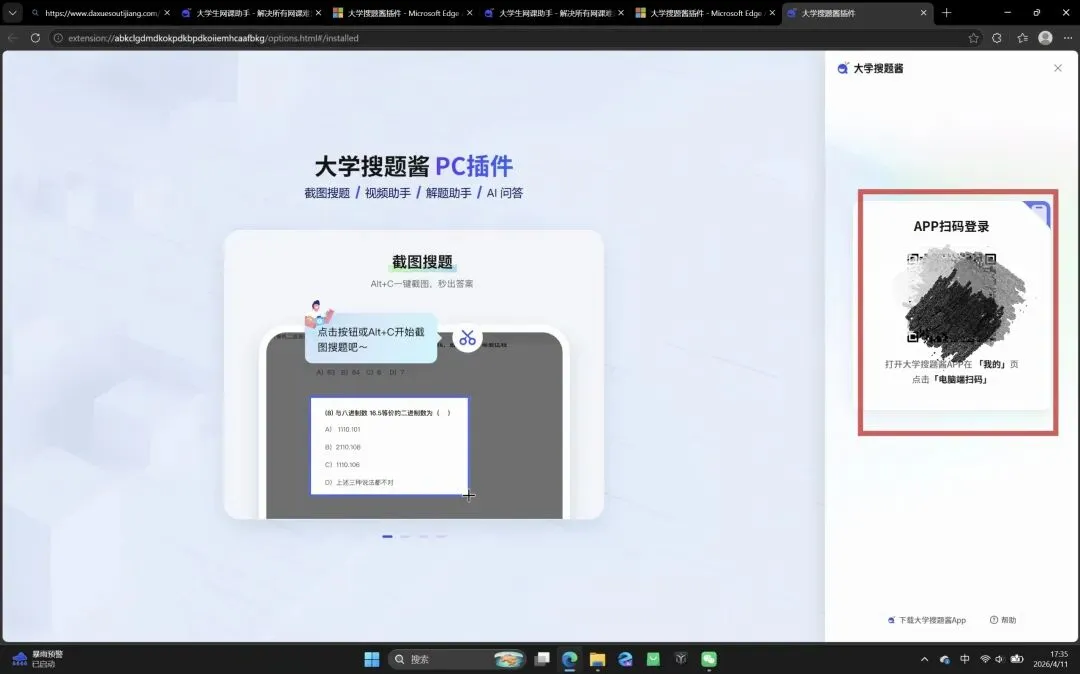 注:使用之前要用手机版的大学搜题酱扫码登录才会出现图标