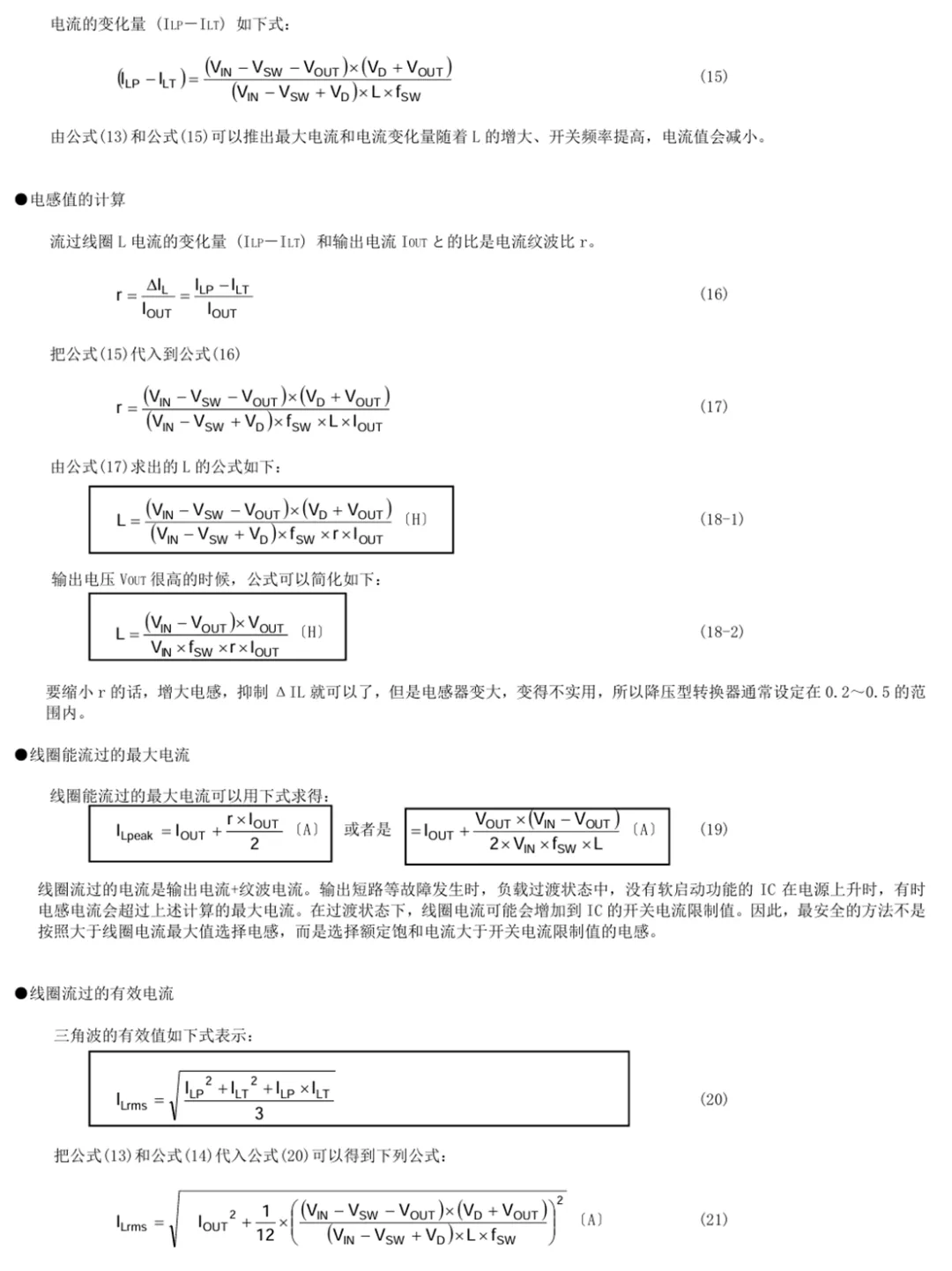 线圈流过的电流是输出电流+纹波电流。输出短路等故障发生时,负载过渡状态中,没有软启动功能的IC在电源上升时,有时电感电流会超过上述计算的最大电流。在过渡状态下,线圈电流可能会增加到IC的开关电流限制值。因此,最安全的方法不是按照大于线圈电流最大值选择电感,而是选择额定饱和电流大于开关电流限制值的电感。