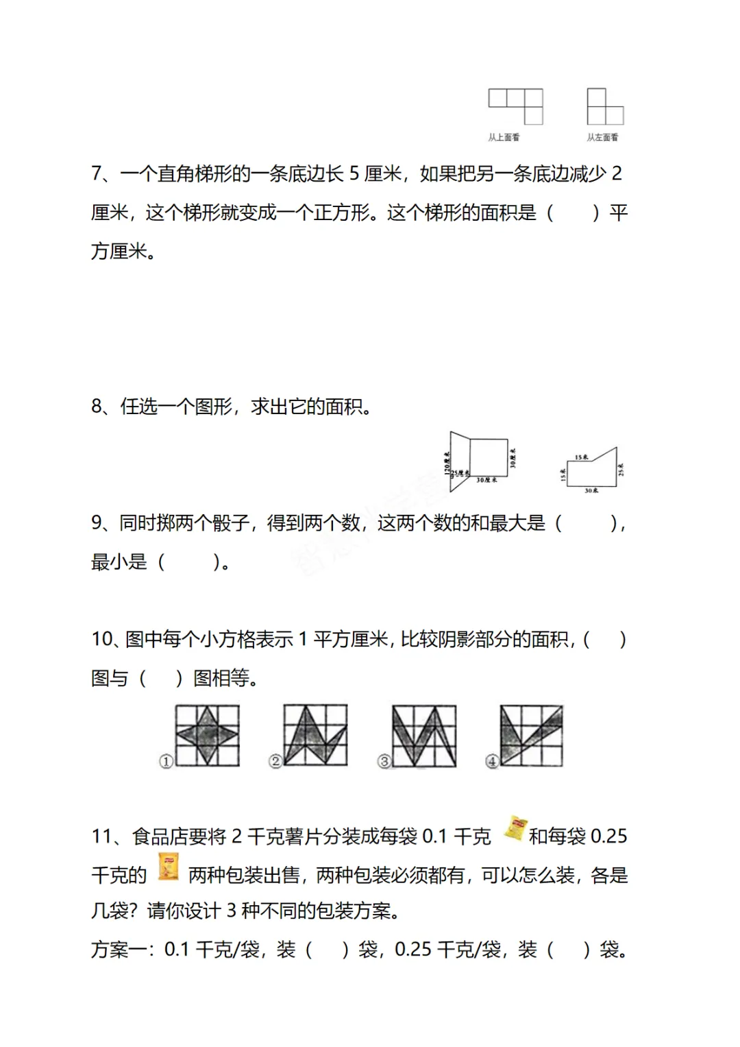 【免费下载】五年级(下)数学 思维训练题4套_1,PDF电子版,可打印