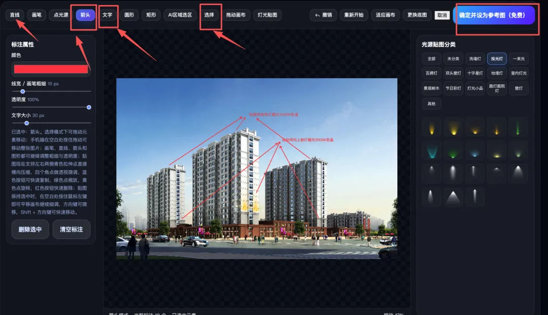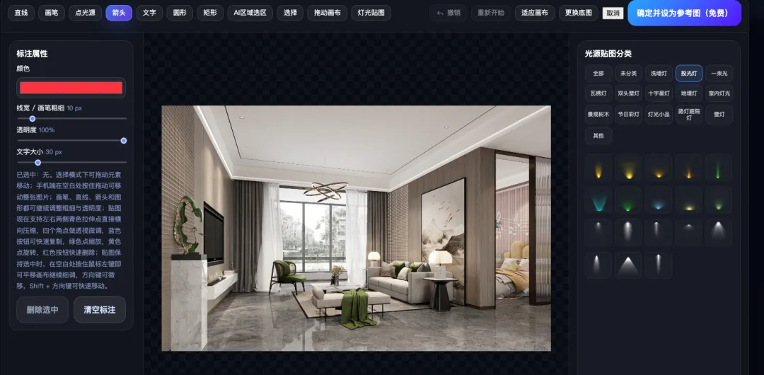 亮点二:灵感画笔,对图片在线编辑,轻松定制灯光位置和效果。