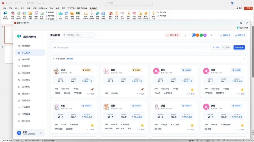 而我最近发现的一个PPT 插件【霹雳设计助手】的【学生档案】工具,完全整合在 PPT 里,恰好解决了这三大痛点。
