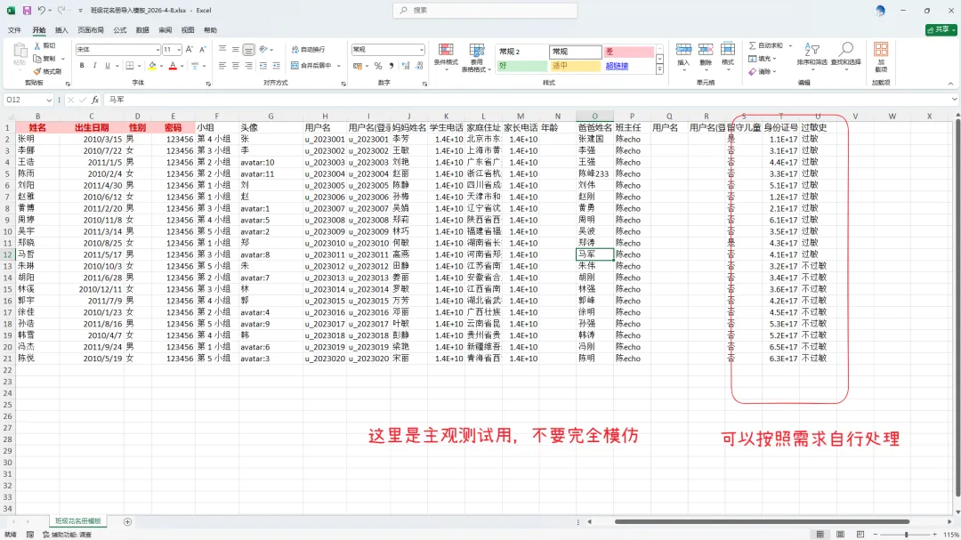 敏感信息规范录入:身份证号、家庭住址等敏感信息准确录入,仅用于必要的班级管理(如助学金申请),不随意展示;