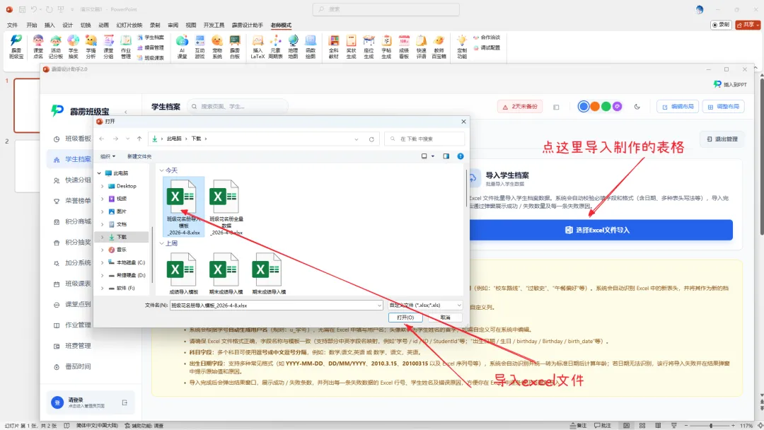 班级数据管理的核心,是 “高效、可控、安全”。传统 Excel 管理模式,让班主任陷入 “表格混乱、查找困难、安全风险高” 的困境,而【霹雳设计助手】的【学生档案】工具,不仅通过集中化管理、快速筛选、多维度分析解决了 “低效” 问题,更重要的是,它完全整合在 PPT 里,零学习成本,班主任打开课件就能用,不用再为学习新软件发愁。