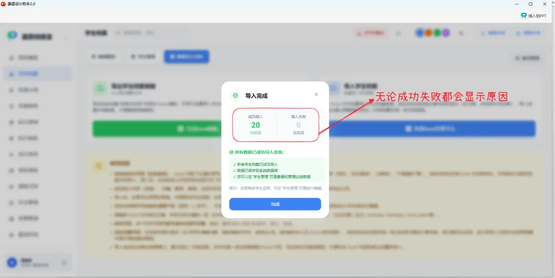 第二步:从左侧菜单栏找到「学生档案」,直接进入功能页面 —— 不用切换软件,课件展示和数据管理同步进行;