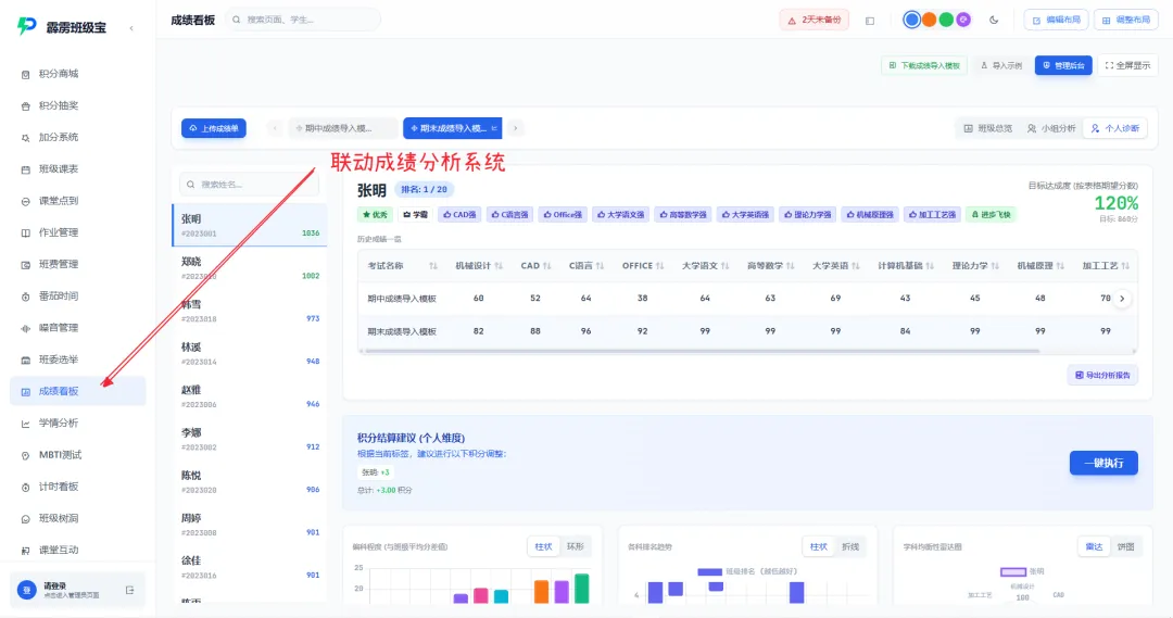 联动成绩看板:学生的学科标签(如 “语文优秀”)自动同步至档案卡片,不用手动录入;