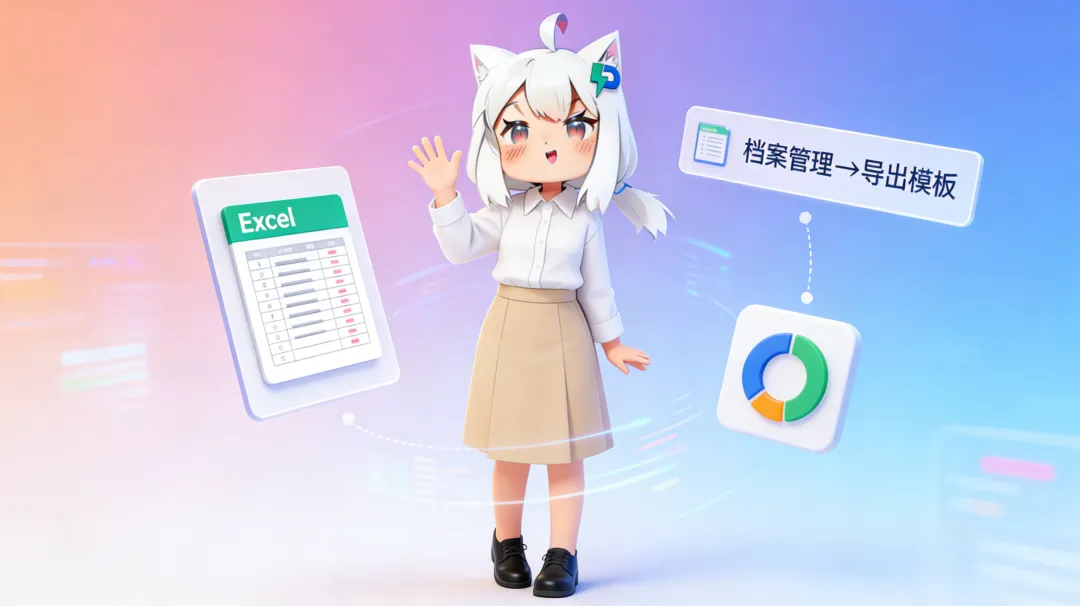 第三步:数据批量导入:点击「档案管理」→ 「数据导入导出」→ 「导出模板」,下载 Excel 模板。