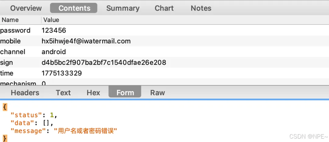 由于我们篡改了签名,服务器会返回签名错误(如 401),证明 Hook 生效且成功修改了参数。基于此,我们可以确认apk登录后台确实调用了com.uulife.medical.utils.SafeUtils.getSign方法。