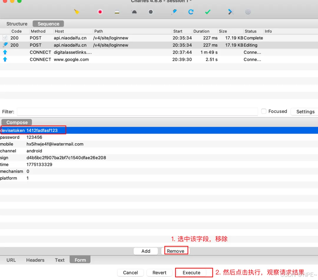 4. 尝试Charles compose,移除部分字段,观察哪些字段是必须的