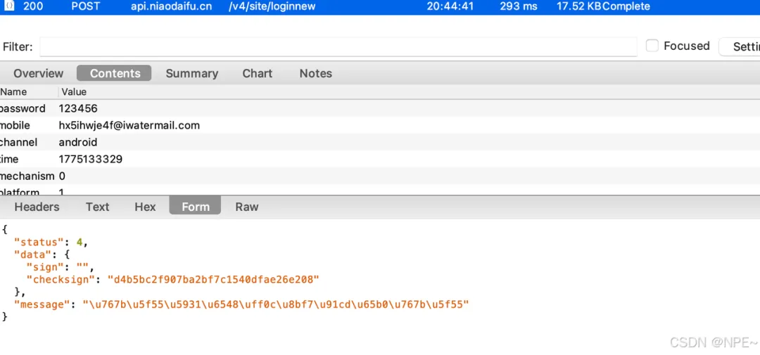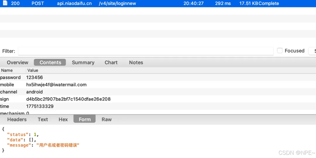 2. 输入用户名密码,点击登录,抓取对应接口