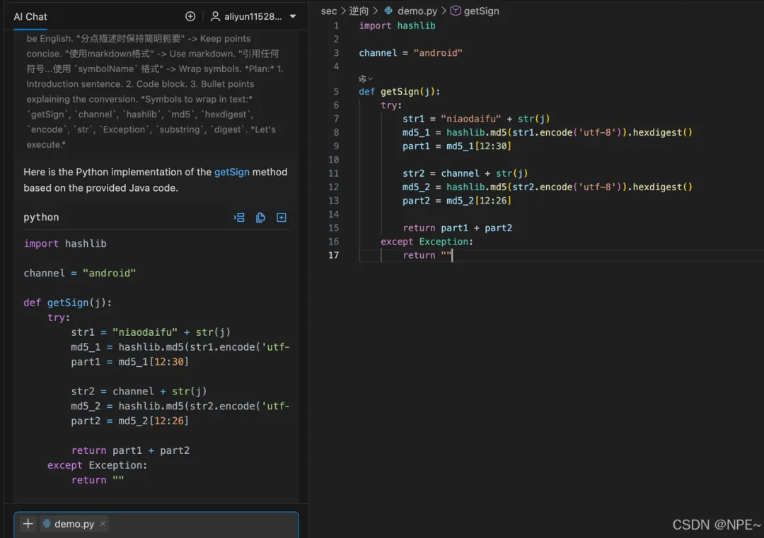 • 于是我们就找到了底层加密逻辑,接着直接复制给AI,让它给我们一个python版本