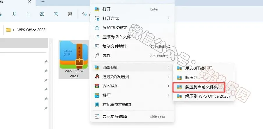 1、下载WPSOffice…软件安装包到电脑上,右键选择【解压到当前文件夹】