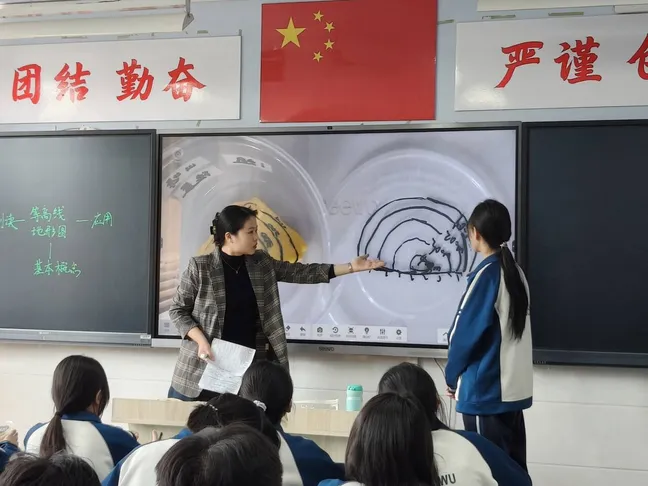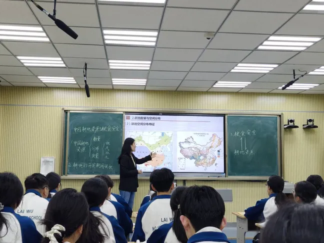 本次联合教研以高二地理课堂教学为载体,设置课堂观摩、分组研讨等环节,实现教学、命题、管理多维度互鉴。课堂展示环节,两校教师各展所长。济南中学王冉冉老师带来高考一轮复习示范课《等高线地形图的判读与应用》,巧用立体模型直观演示地形特征,引导学生动手描绘等高线地形图,将抽象知识具象化,紧扣“夯实基础、提升能力”的复习思路,课堂互动活跃,为地理学科备考提供了优质范例。莱芜十七中杨波老师执教《中国耕地资源与粮食安全》,灵活运用“三段五步”教学模式,凸显学生主体地位,展现扎实的教学功底与课堂把控能力。两校地理教研组全程认真观摩,细致记录课堂亮点。