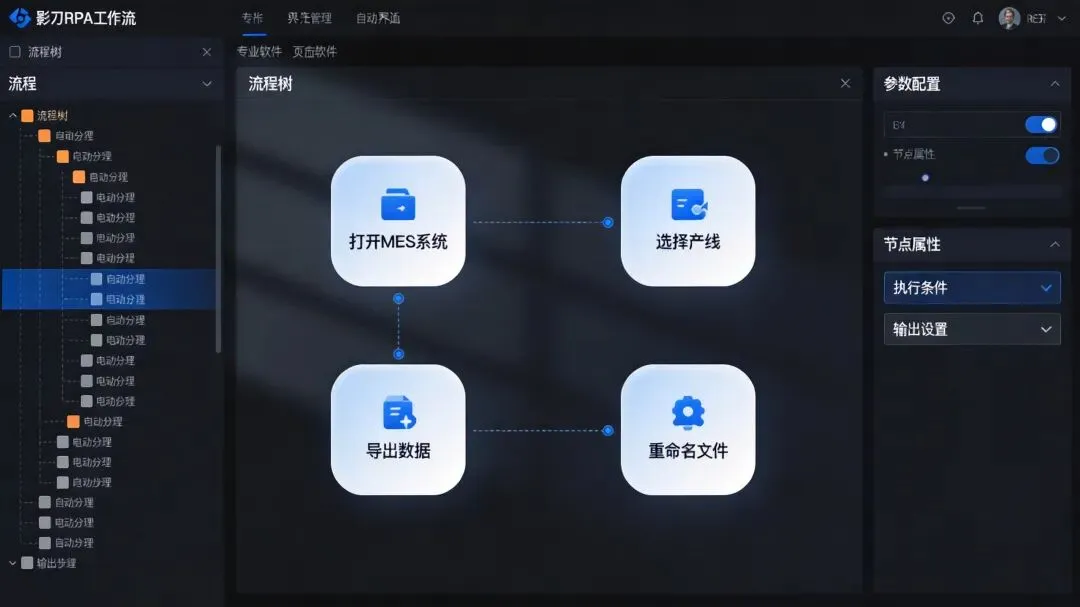 录制自动化流程:自动打开MES系统 → 选择对应产线、时间段 → 导出测量数据 → 自动重命名