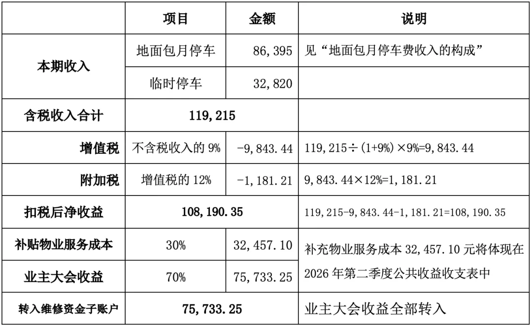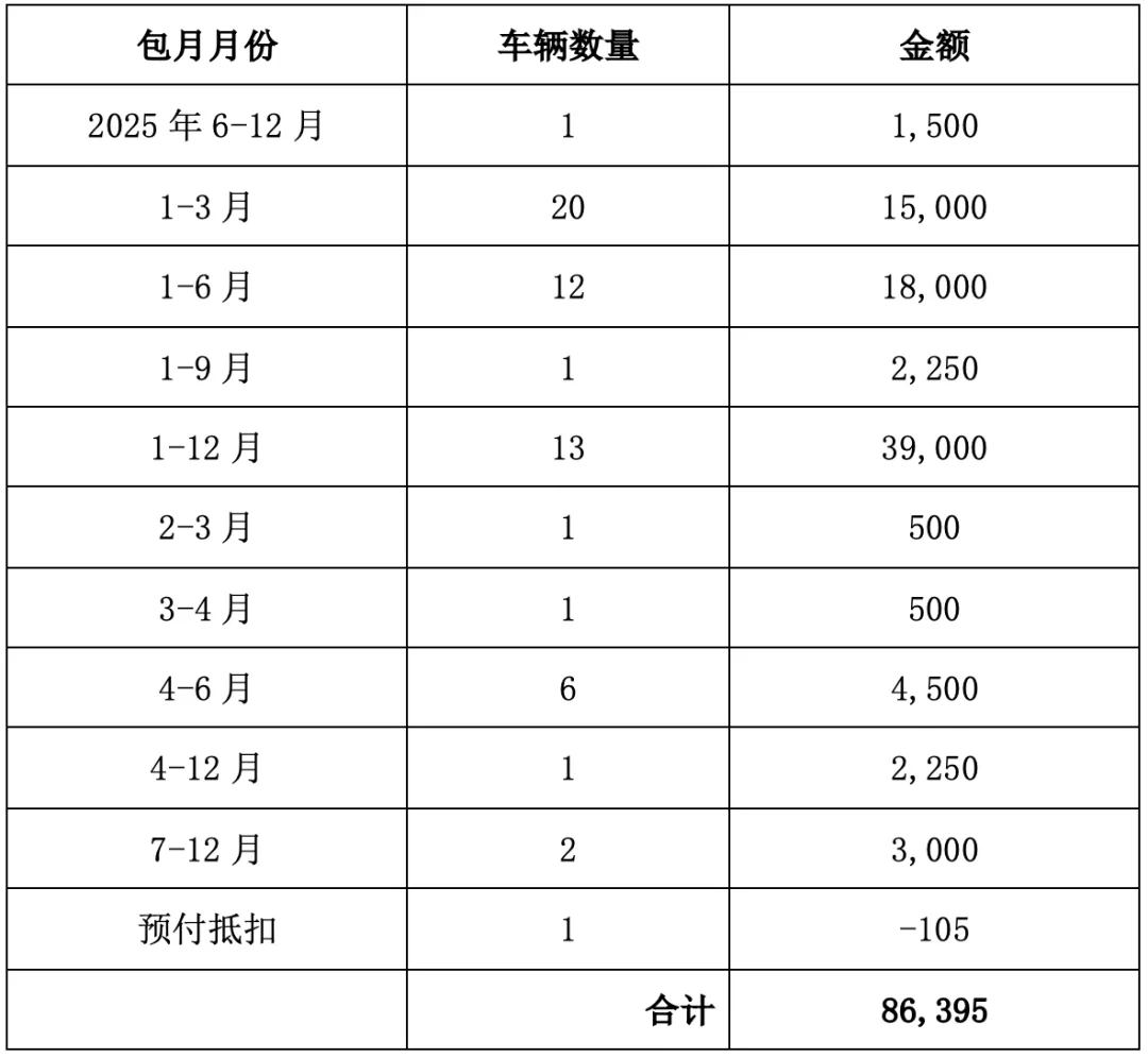 有1辆业主包月车在亚都物业服务期间有尚未使用完的预付停车费(见《关于2025年第三季度公共收益的说明》)。在抵扣2025年的地面包月停车费及临停费后,尚余105元。该预付余款105元在业主于本季度支付地面包月停车费时抵扣完毕,不计入本季度收入。