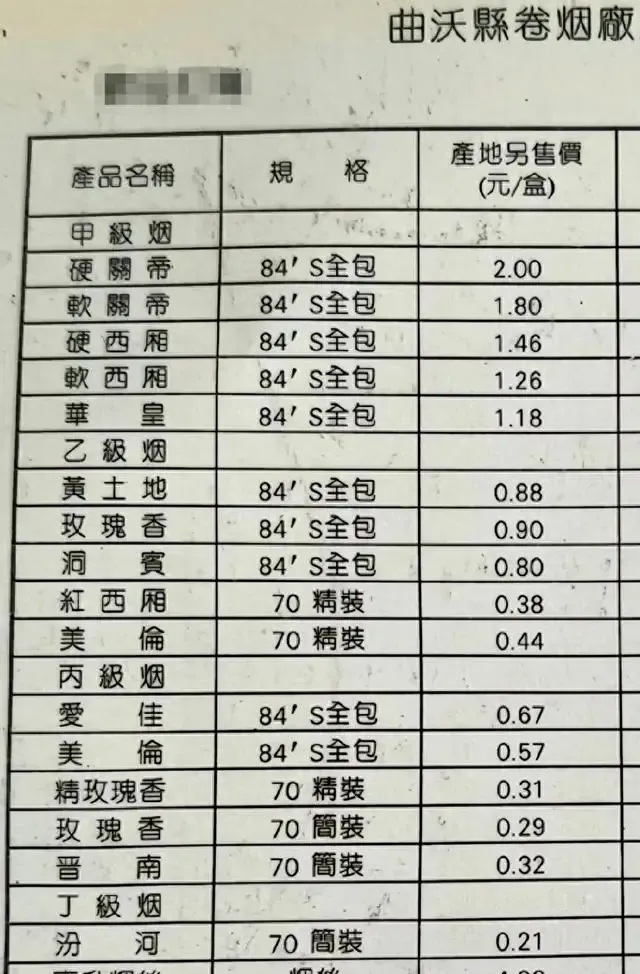 01|先看价目表,就知道当年的烟是怎么分档次的