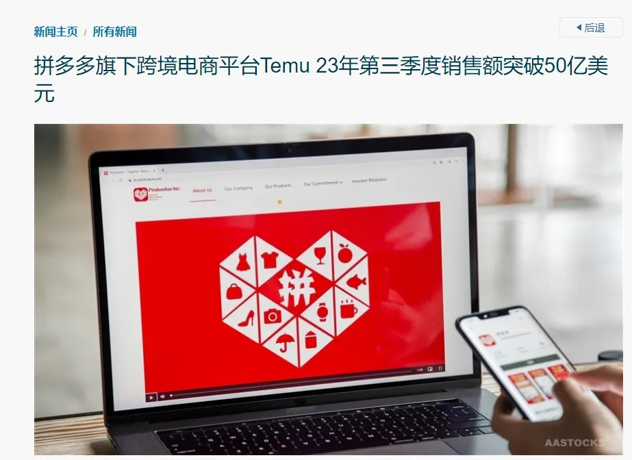 Temu三季度GMV突破50亿美元 图源:AASTOCKS