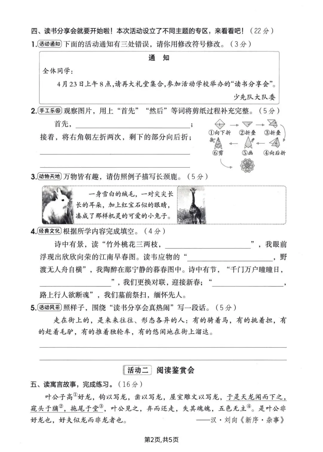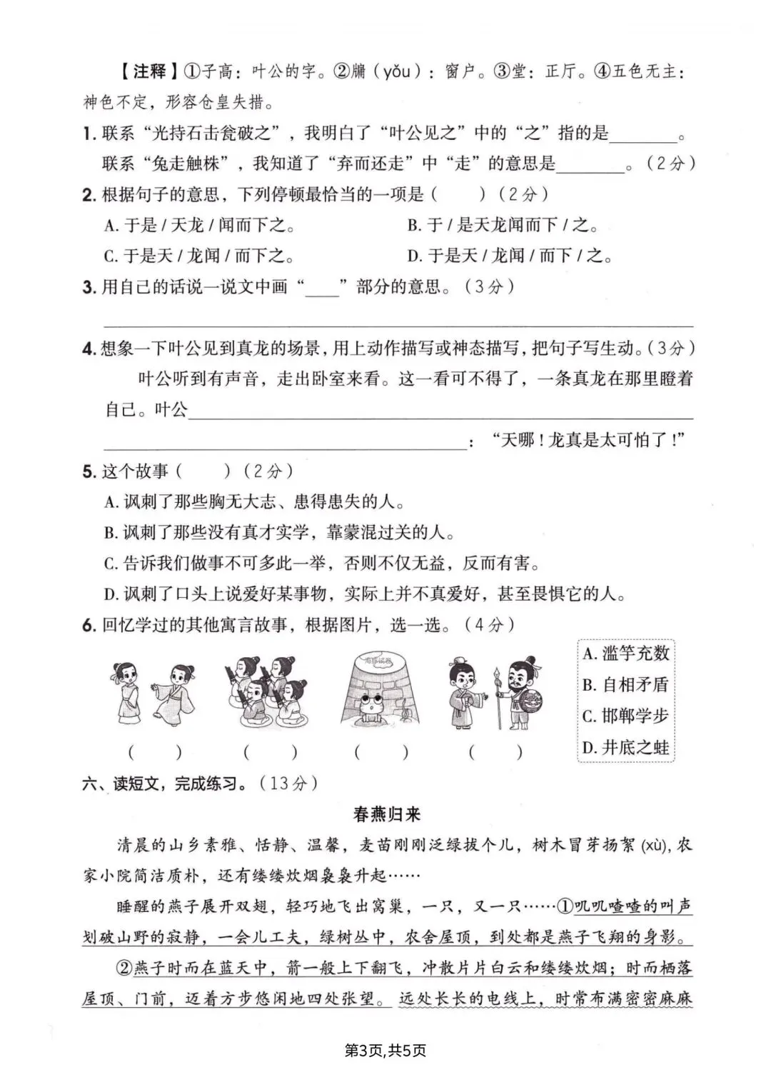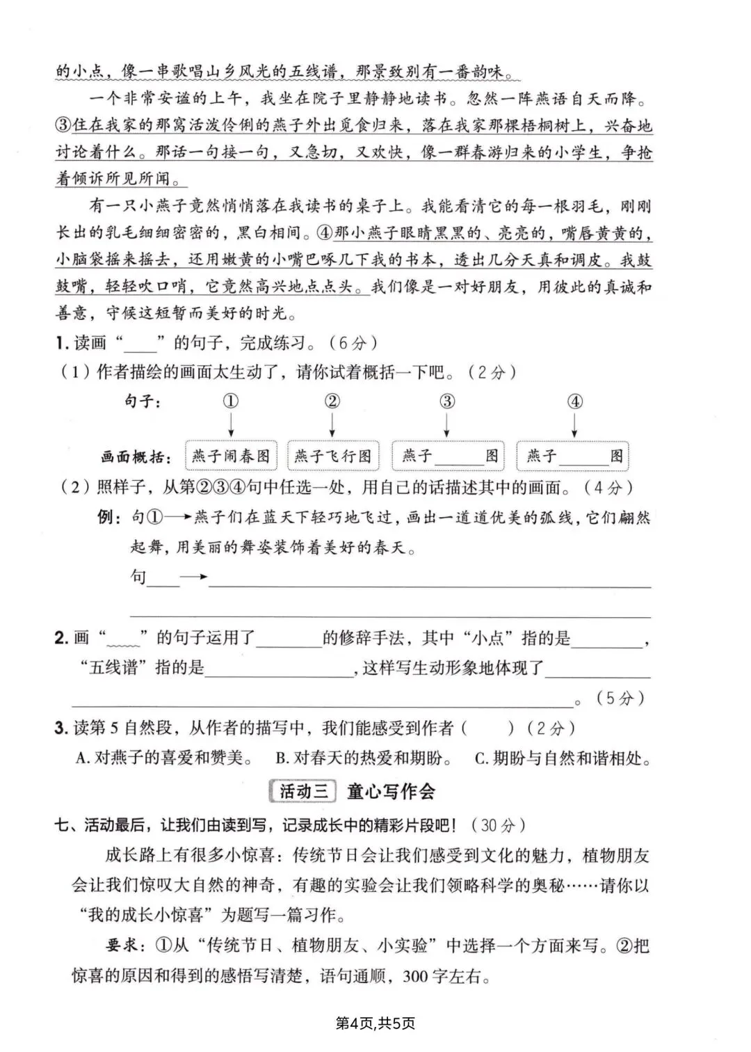 三年级下册语文期中情景测试卷含答案可打印