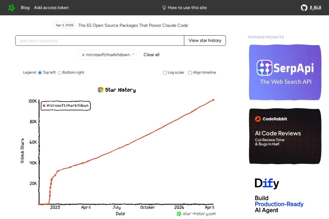 ▲ MarkItDown 仓库的强劲增长势头