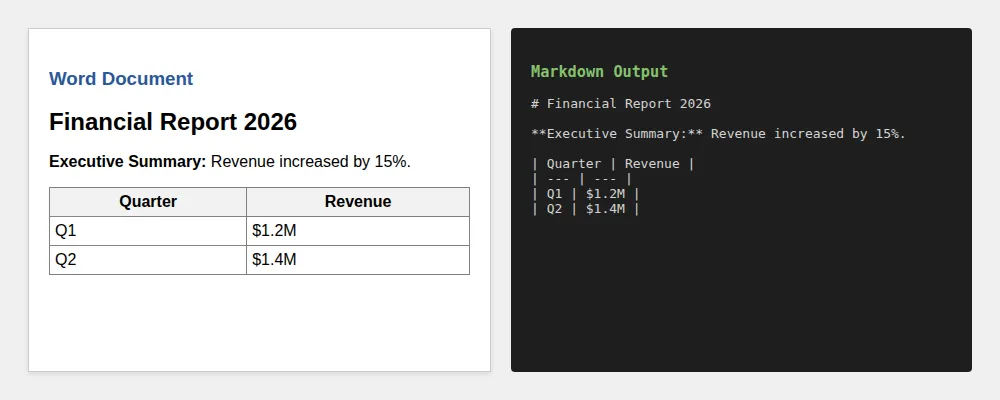 ▲ 复杂 Word 表格到 Markdown 的完美还原