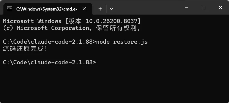 const fs = require('fs');const path = require('path');// 读取 .map 文件const map = JSON.parse(fs.readFileSync('cli.js.map', 'utf8'));// 设置输出目录const outDir = './claude-code-source';// 遍历所有源文件for (let i = 0; i < map.sources.length; i++) {const content = map.sourcesContent[i];// 跳过没有内容的文件if (!content) continue;let relPath = map.sources[i];// 清理路径中的 '../' 前缀while (relPath.startsWith('../')) relPath = relPath.slice(3);const outPath = path.join(outDir, relPath);// 创建目录fs.mkdirSync(path.dirname(outPath), { recursive: true });// 写入文件fs.writeFileSync(outPath, content);}console.log('源码还原完成!');