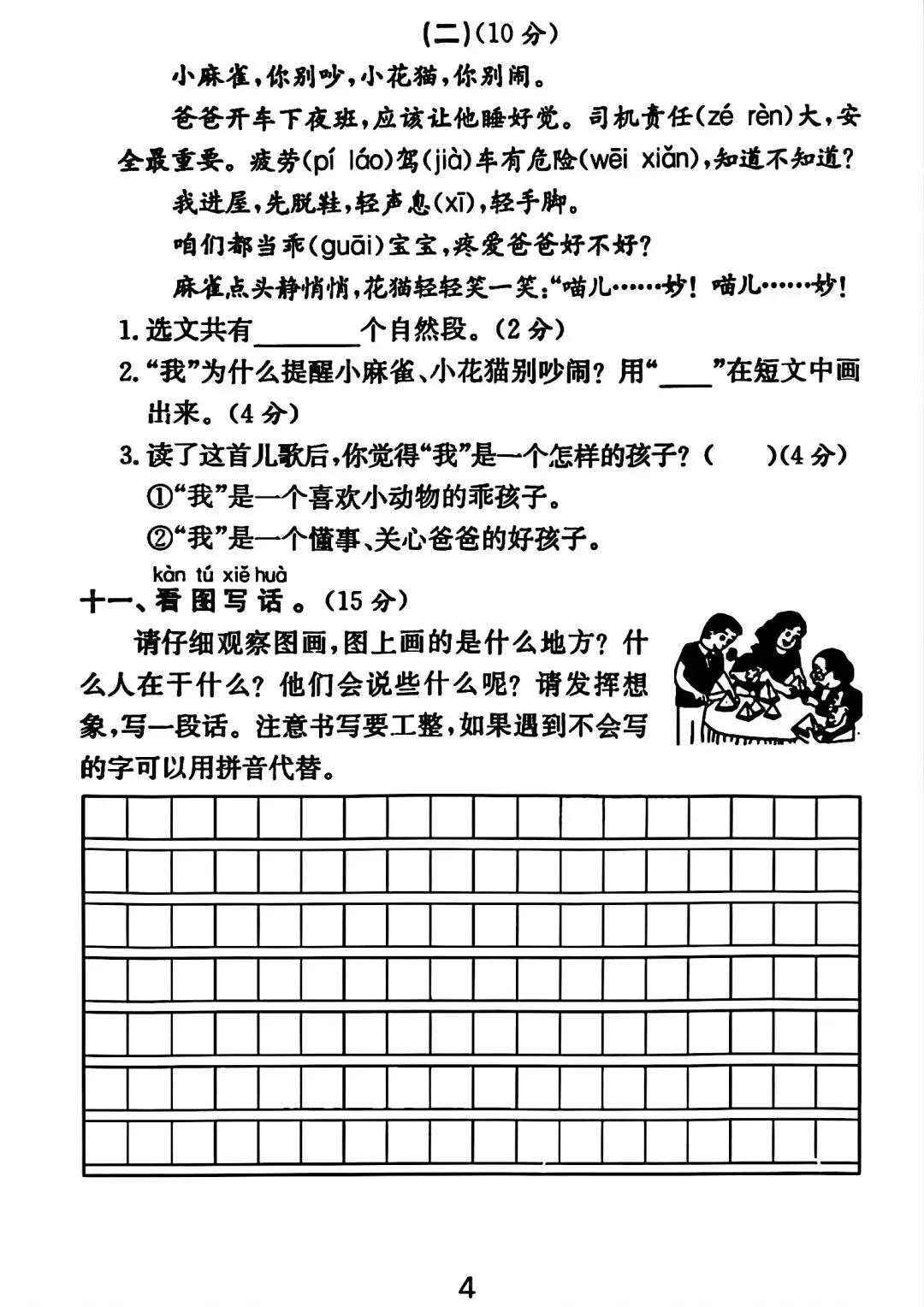 一年级下册语文第四单元测试卷可打印|名校真题检测卷+拔尖测试卷