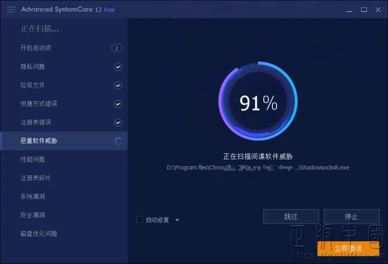 Advanced SystemCare是一款系统优化软件,从恶意软件清除到漏洞修复,从注册表清理到垃圾文件清理,对系统进行智能扫描优化。