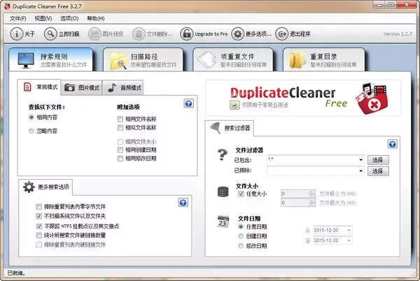 电脑使用时间长了,可能就会有很多重复的文件了,最常见的是图片文件和音乐文件,就用 Duplicate Cleaner 帮你查找下吧!它可以同时搜索多个分区多个文件夹,支持按文件名称、大小和时间进行搜索。