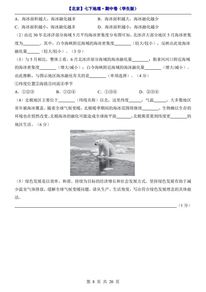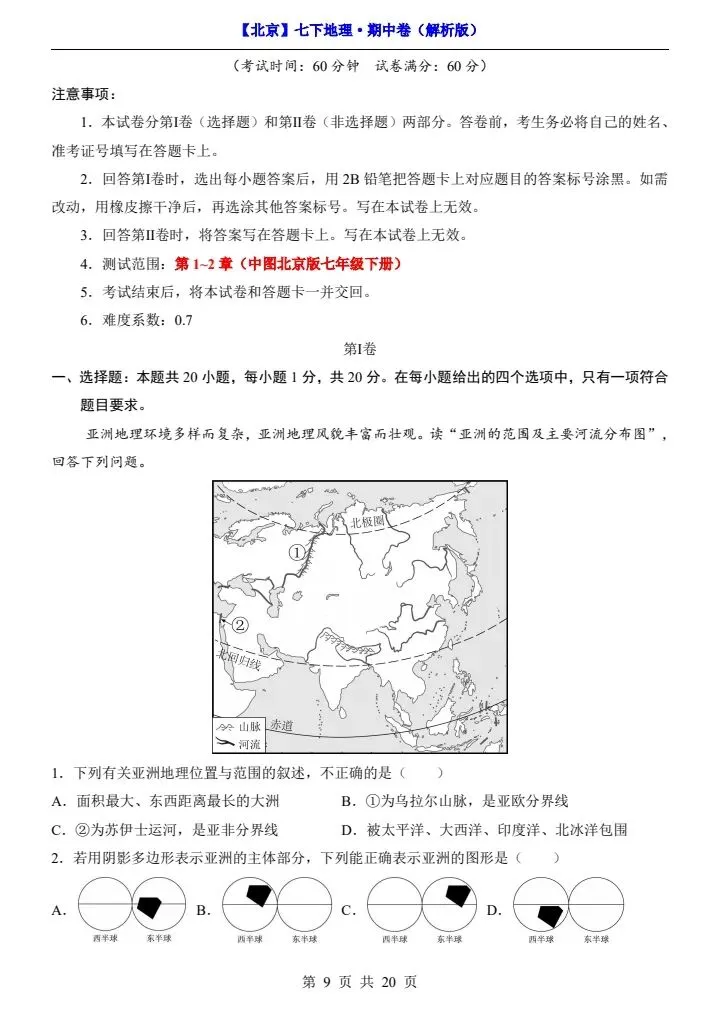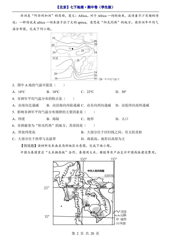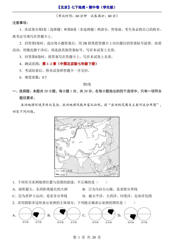 今日分享【北京版】新七下地理期中测试卷(答案+答题卡)完整电子版可打印!高清可打印,每日轻量练习,拒绝无效刷题,用系统化资料筑牢学科基础,让假期成为提升的黄金期,开学轻松领跑。
