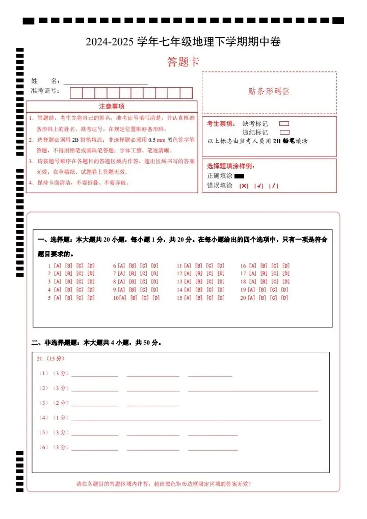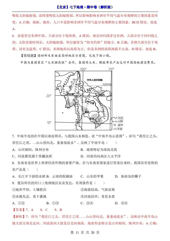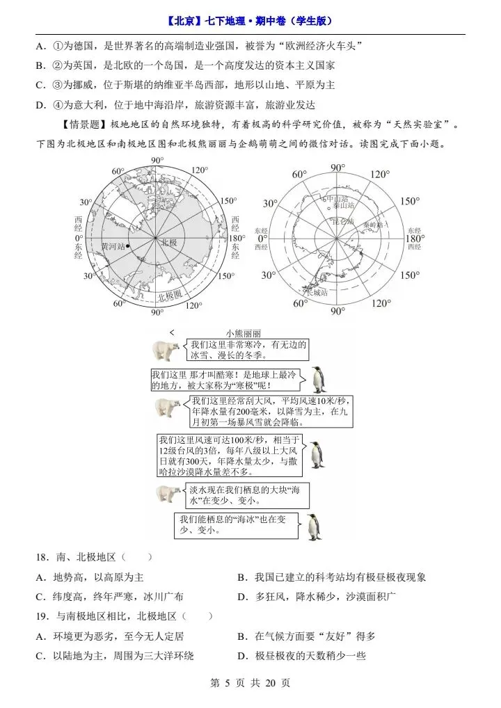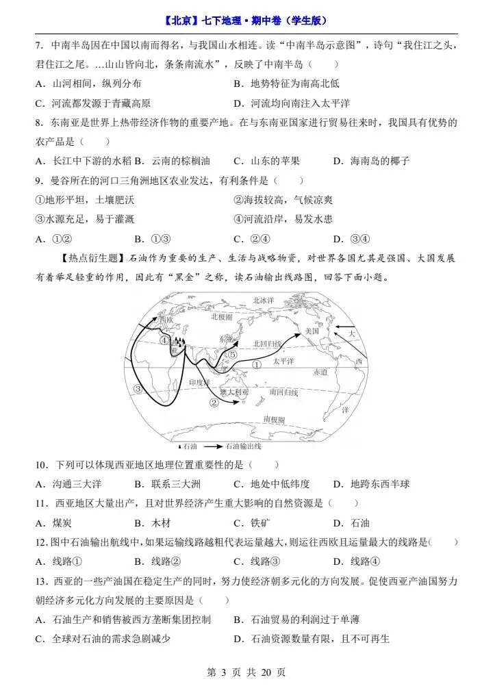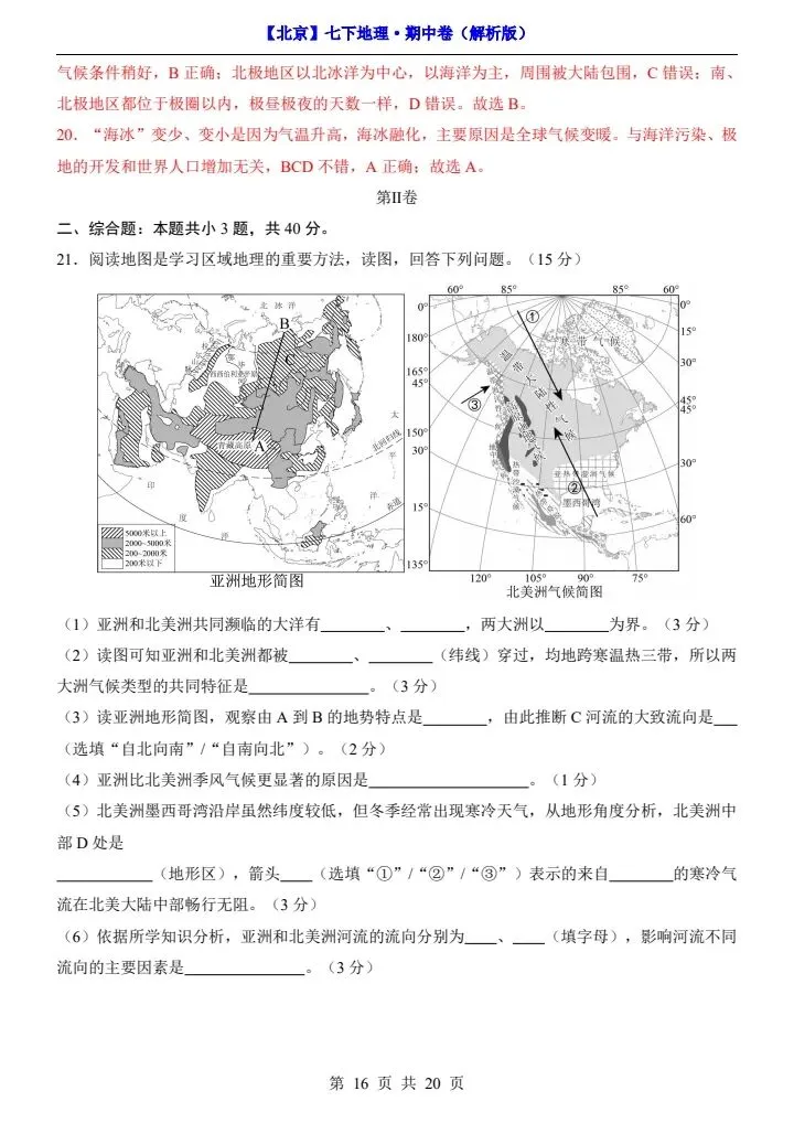 今日分享【北京版】新七下地理期中测试卷(答案+答题卡)完整电子版可打印!高清可打印,每日轻量练习,拒绝无效刷题,用系统化资料筑牢学科基础,让假期成为提升的黄金期,开学轻松领跑。