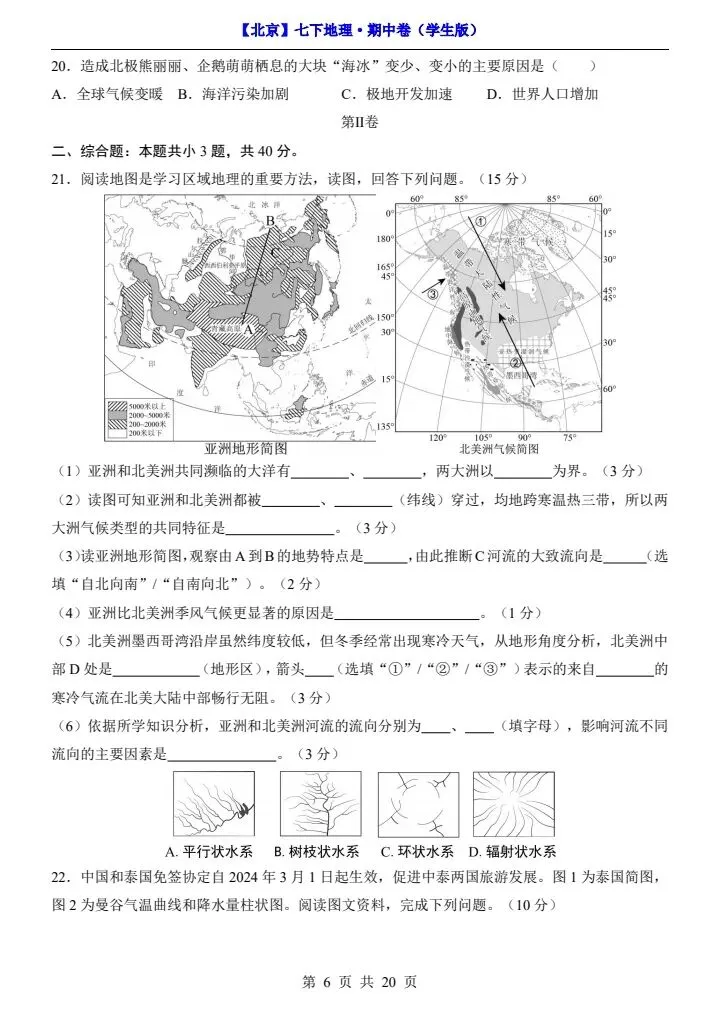 【北京版】新七下地理期中测试卷(答案+答题卡)完整电子版可打印