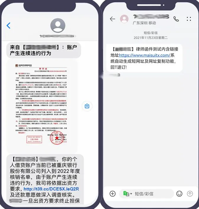 我们当前的律师函是整合金融、法律、科技三大领域资源,借助高效的人工智能技术,提供智能化定制模板,一键提交催收数据,批量生成电子函件。通过短信、彩信批量发送函件,省去大量手工劳动,显著降低发函成本,赋能金融借贷逾期法催。