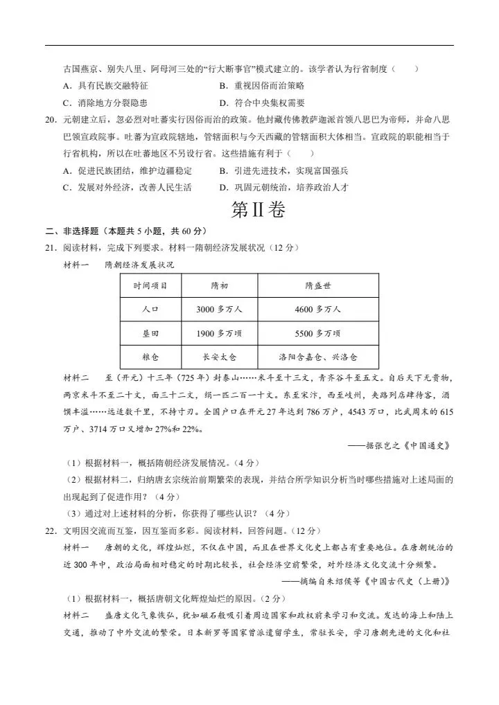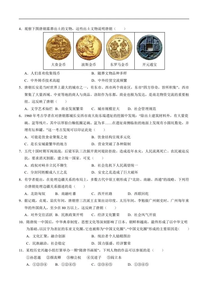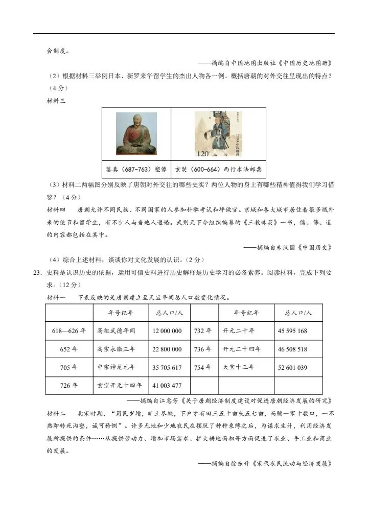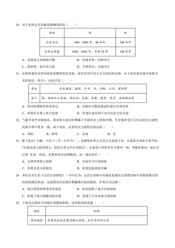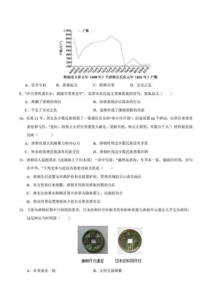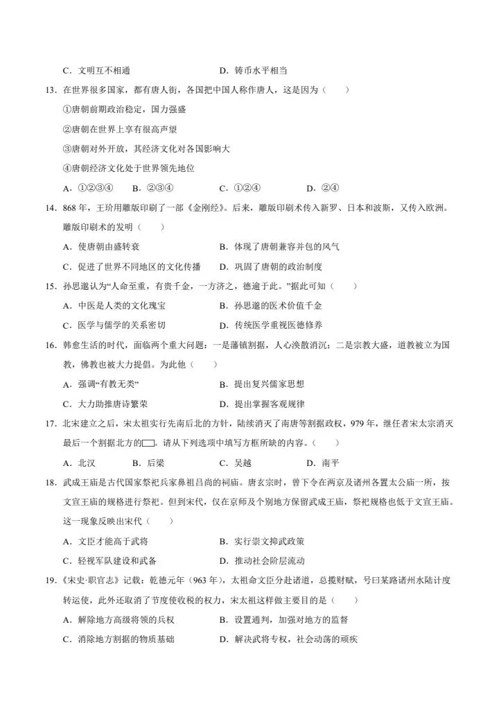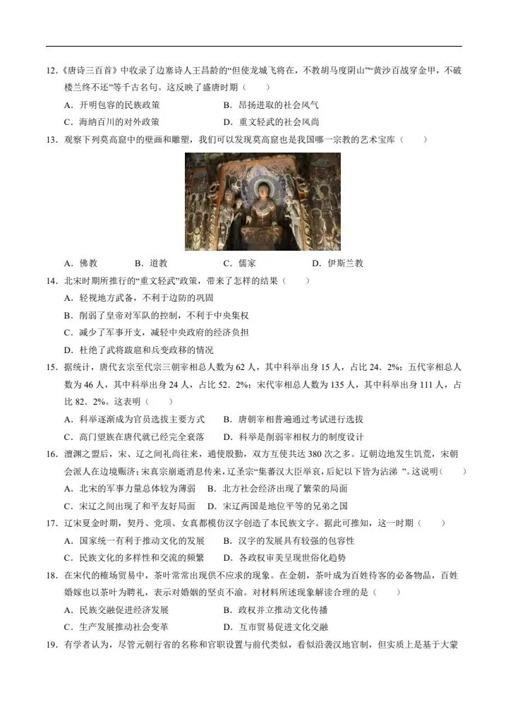 七年级下册历史期中模拟卷2套含答案(完整电子版可打印)