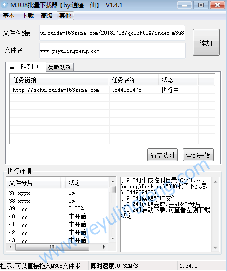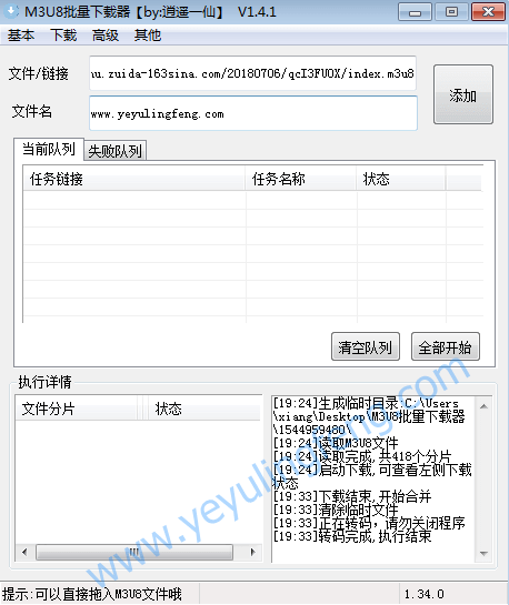 工具会将各个小分片的信息显示在底部,并实时显示选中状态,待列表全部处理完毕后就代表视频下载成功了,软件默认将视频储存至output文件夹中。