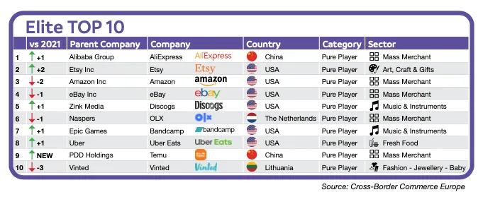 (欧洲十大跨境电商平台排行榜 图源:Cross-Border Commerce Europe)