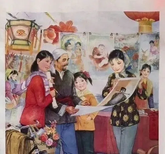 这个年画摊可不是谁家都有,得赶上年前赶集才见得着,画摊上卷着小娃娃、喜鹊、仕女、山水,全是头一回见的新鲜事儿,攒钱买一张贴在堂屋正中,过年的味道才算到了,七八十年代,家里的自行车杠上绑个铁筐,装着刚买回来的画纸,孩子在后面巴巴地跟着不撒手,我爸总说,那时候年画一上墙,得有股印刷墨香,沾着年的盼头,街边大姐们比谁家买的画新、画喜庆,今年新出的款都是大家伙围着挑,现在装饰画实惠又多样,唯独缺点久远的“过年感”。