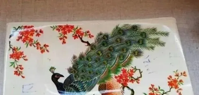 这块瓷盘上画着一只漂亮孔雀,家里最体面的时候才舍得拿出来请客,搪瓷盘子拿在手里分量不小,边口裹铁筋,光一照亮闪闪的,小时候家访串门,谁家盘里装的糖果瓜子多半用的就是它,奶奶说,磕个小口舍不得扔,谁家娶媳妇买了盘子,东家西家都得借着看看花样,端茶递果的小细致,全靠这玩意撑场面,现在塑料盘子不锈钢盘随手买随手扔,讲究点花头的还得认老搪瓷货才有味道。