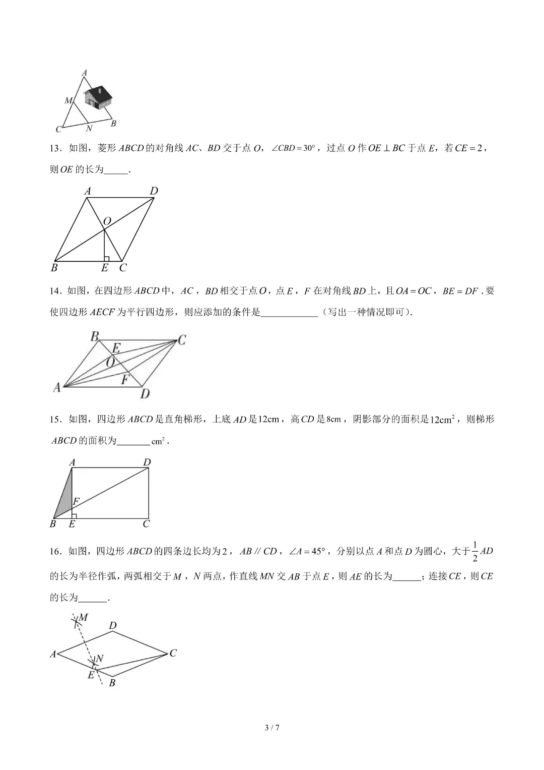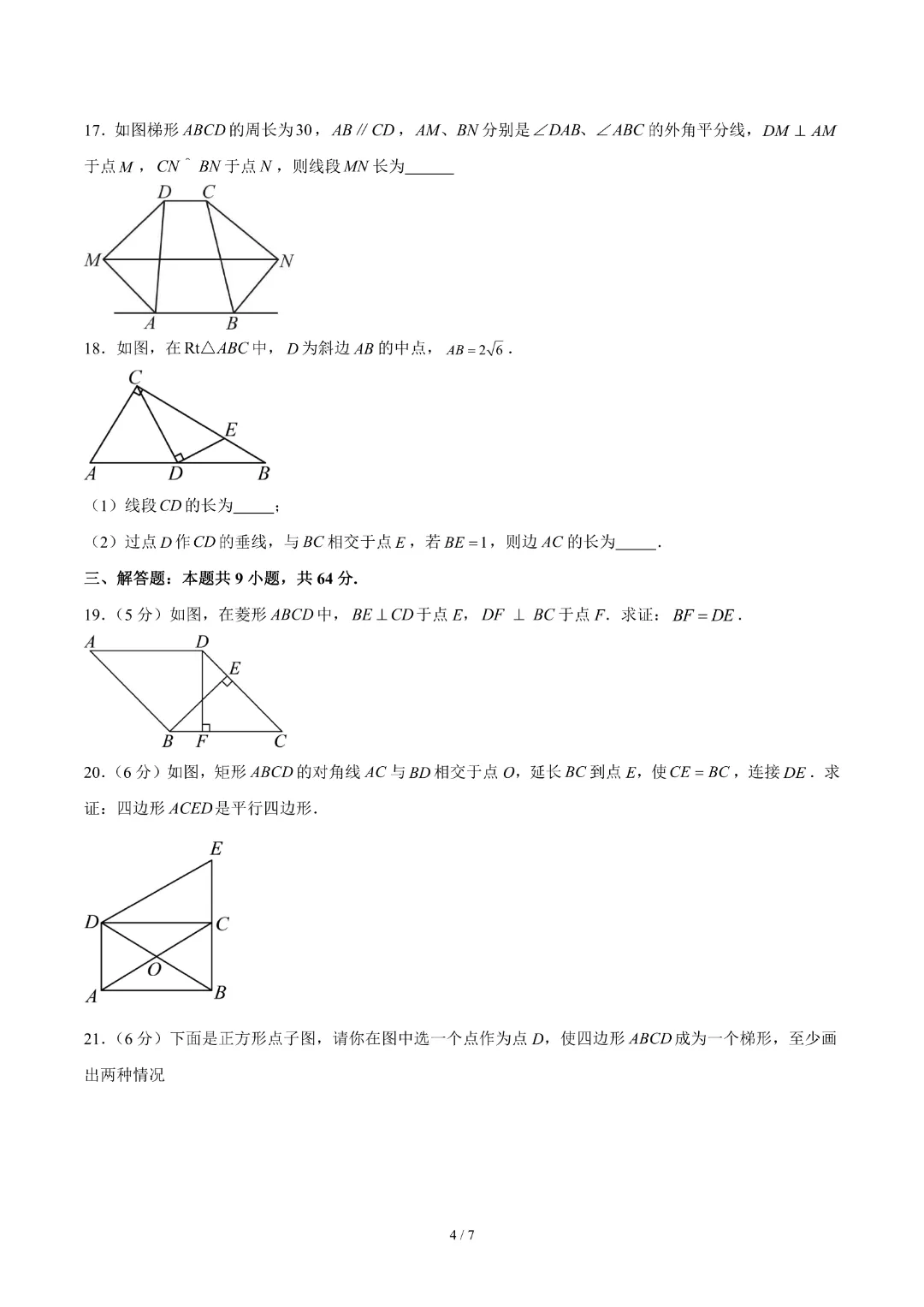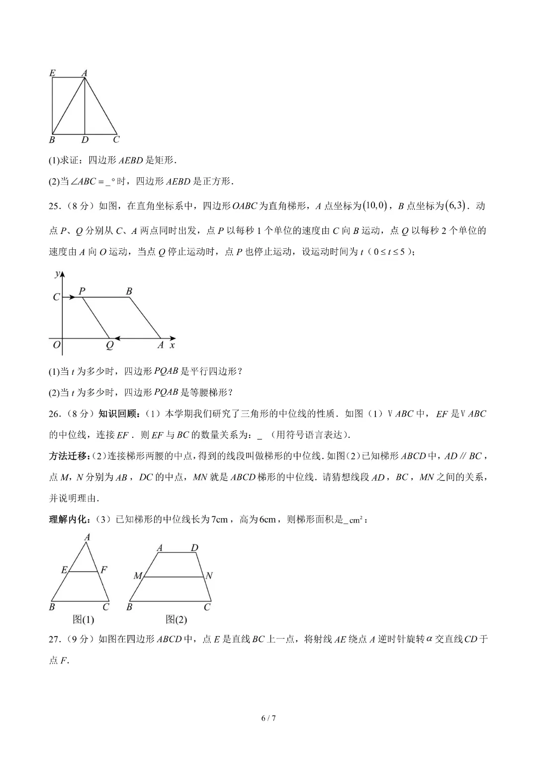 【26春新版八年级下册数学苏科版】初二下册数学《第8章四边形 单元自测卷带答案》丨完整电子版可打印