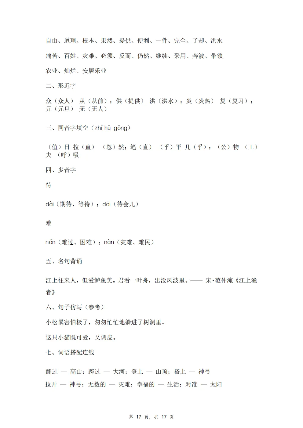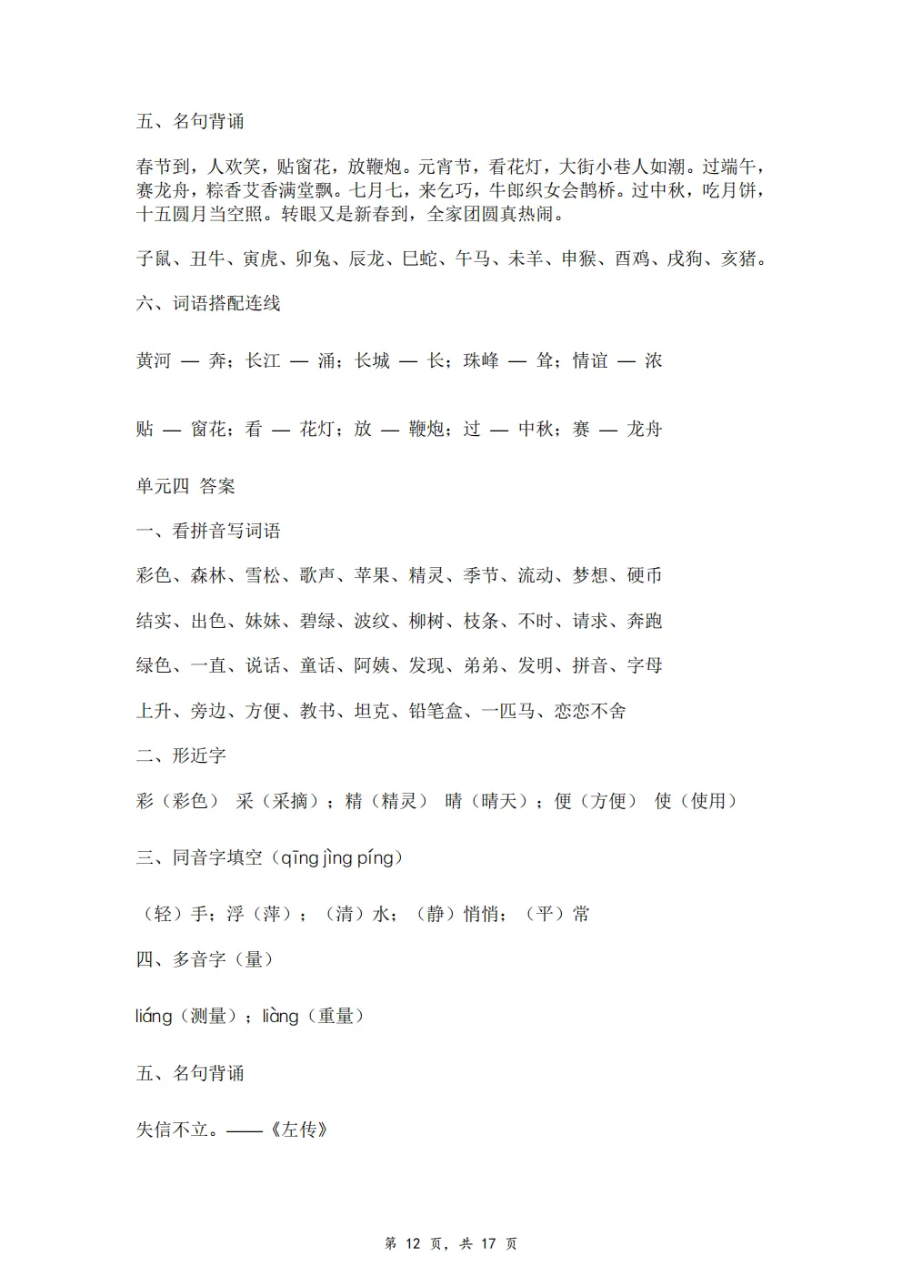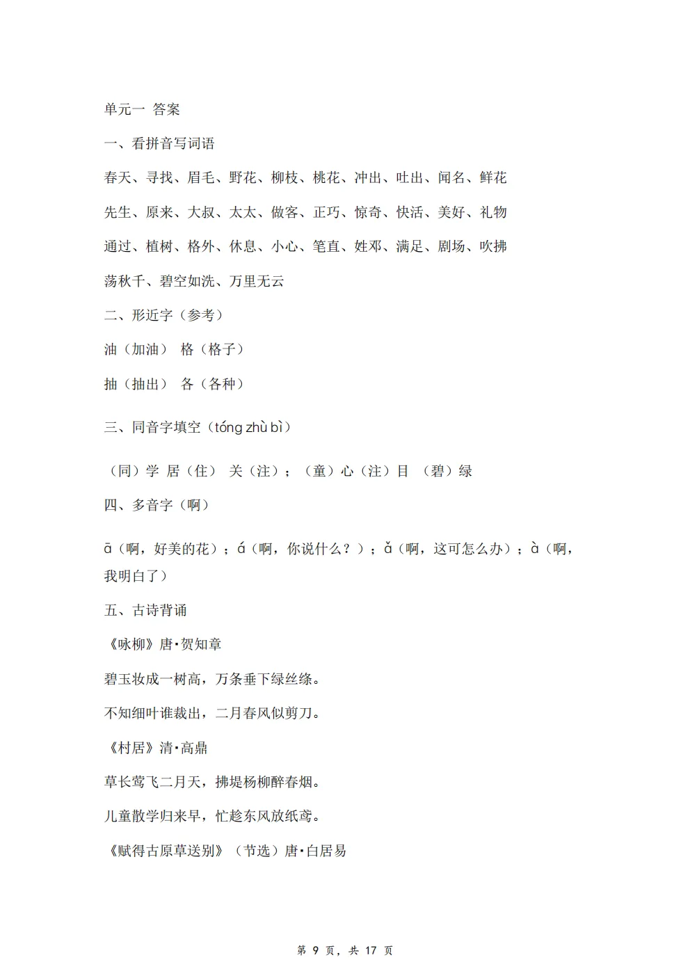 26春二年级下册人教部编版语文《单元重点知识默写清单》高清可打印