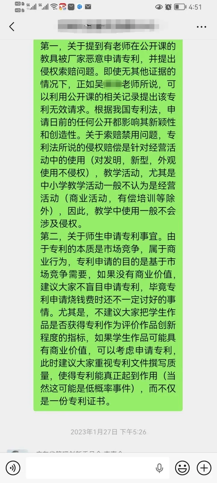 此前,在一微信群中,老师们就中小学老师,学生等申请专利的相关问题进行了讨论,我在群中简要发表了一些粗浅看法,为解答广大老师的一些疑惑,现将相关内容转发如下。