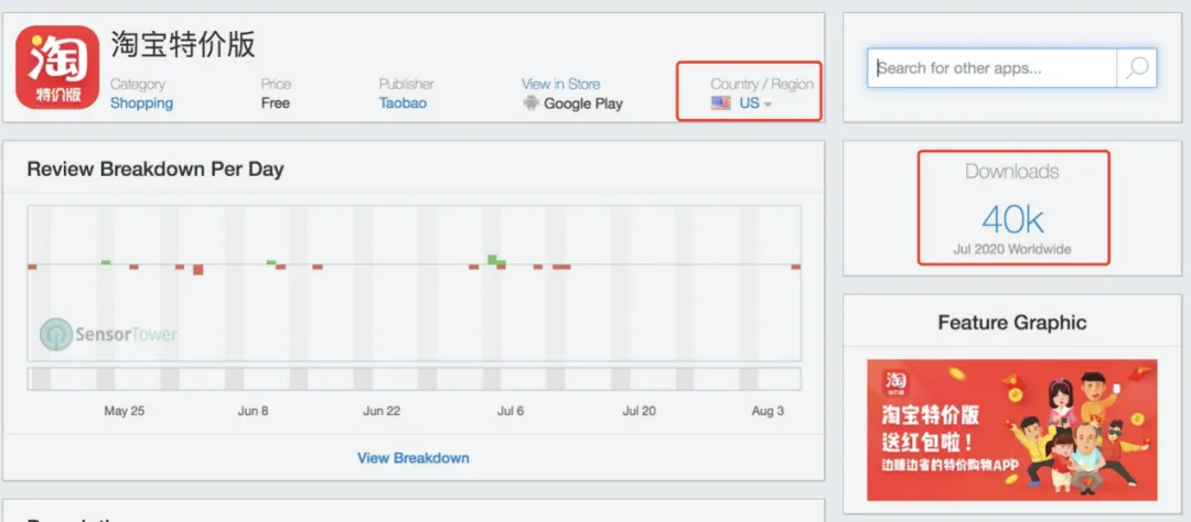 淘宝特价版在美国谷歌应用商店下载量飙升,7月下载量已达4万次