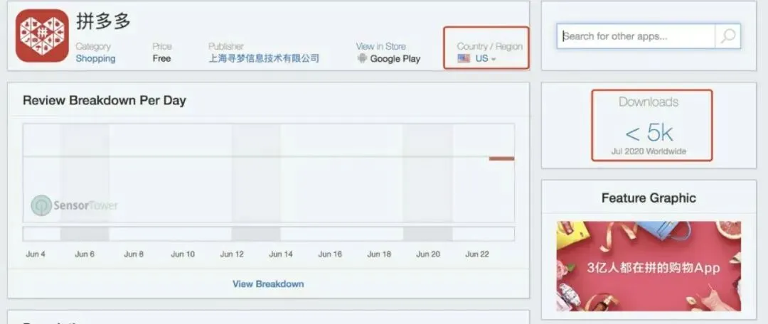 这也把“淘宝特价版”在美国谷歌安卓应用商店的下载量带到了拼多多8倍左右的高度。后者当前尚未正式提供海外服务。