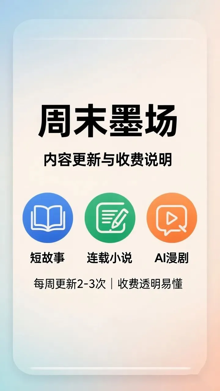 从今天开始,公众号「周末墨场」的内容会按照短故事、连载小说、AI漫剧三个板块循环更新(三个板块对应独立故事,原则上不互通,特别受欢迎IP会进行改扩编),为了让大家看得明白、消费得放心,我把所有规则一次性说清楚。