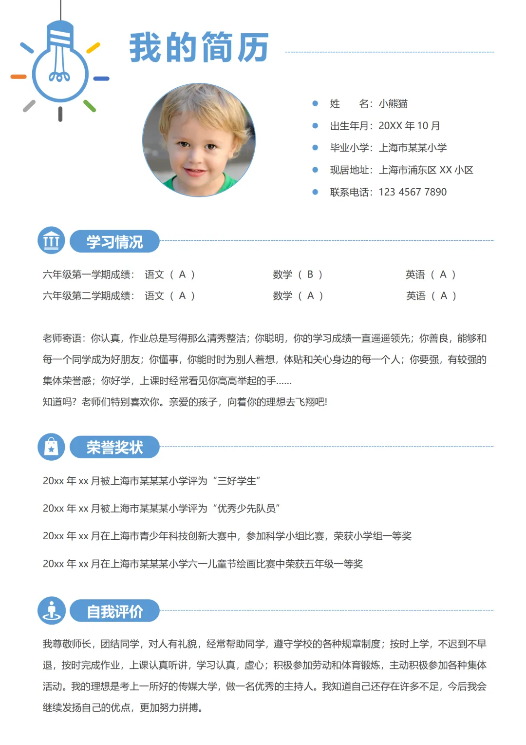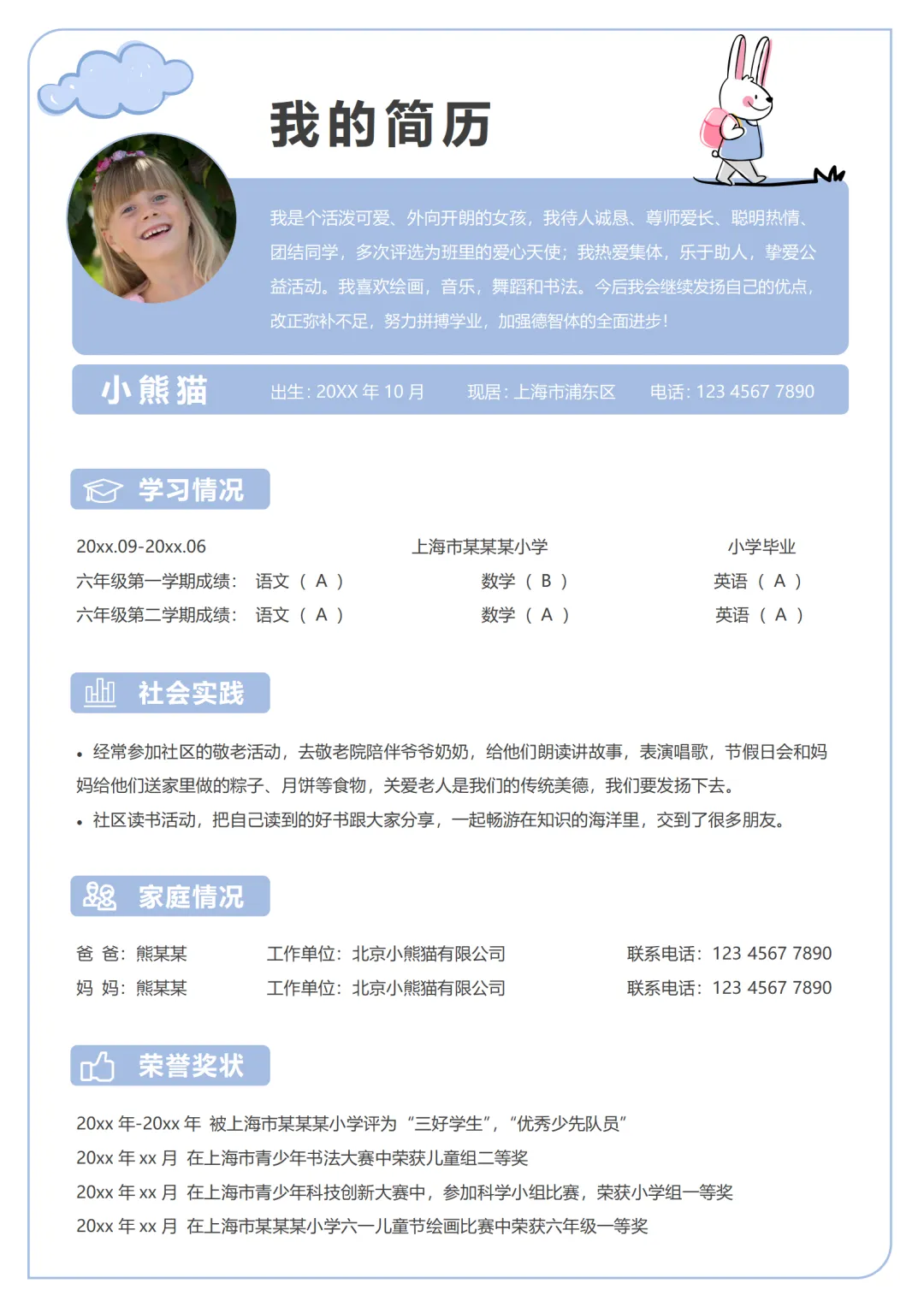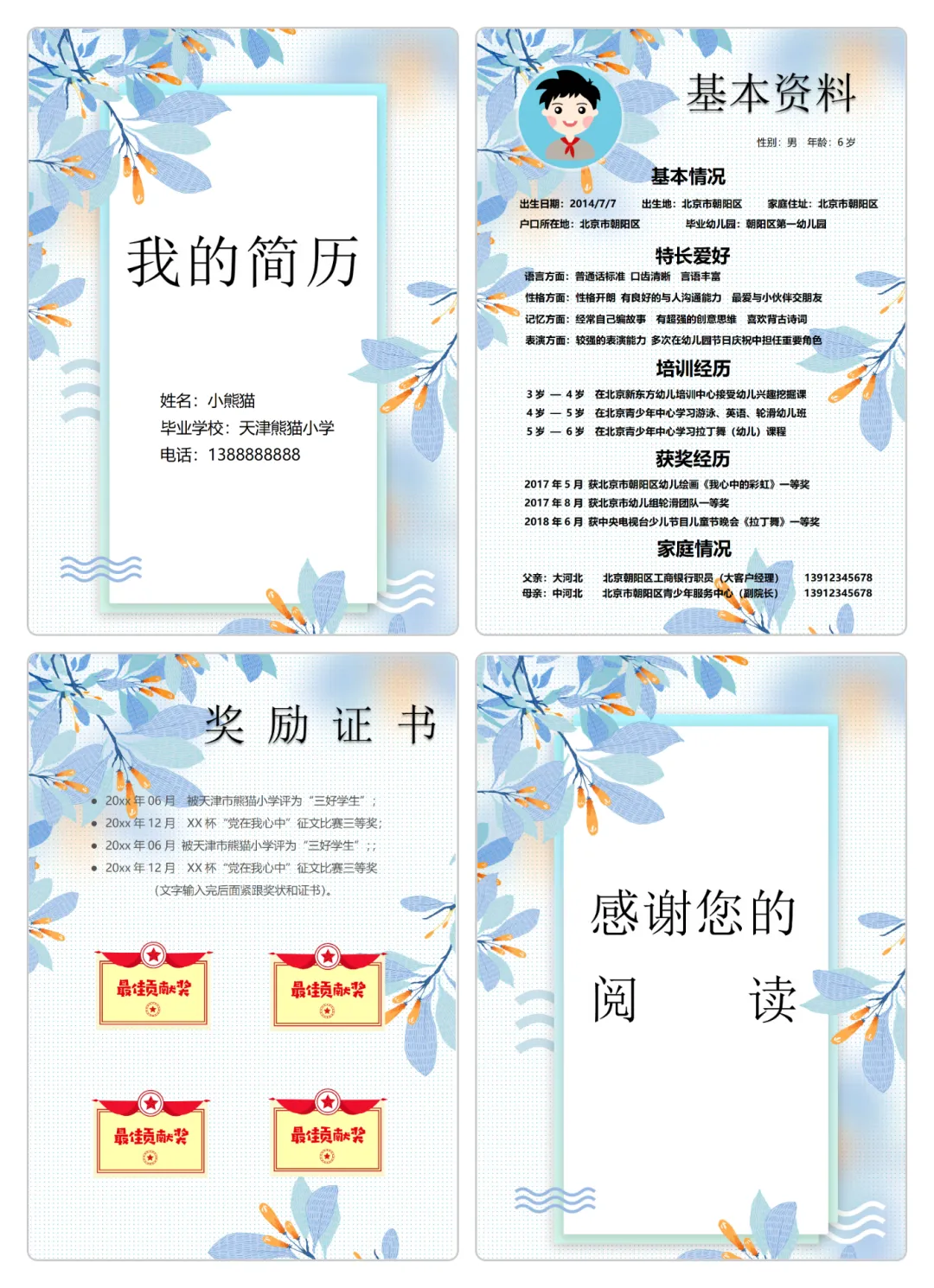 最新小升初简历模板word可编辑|包含多页和单页|免费分享