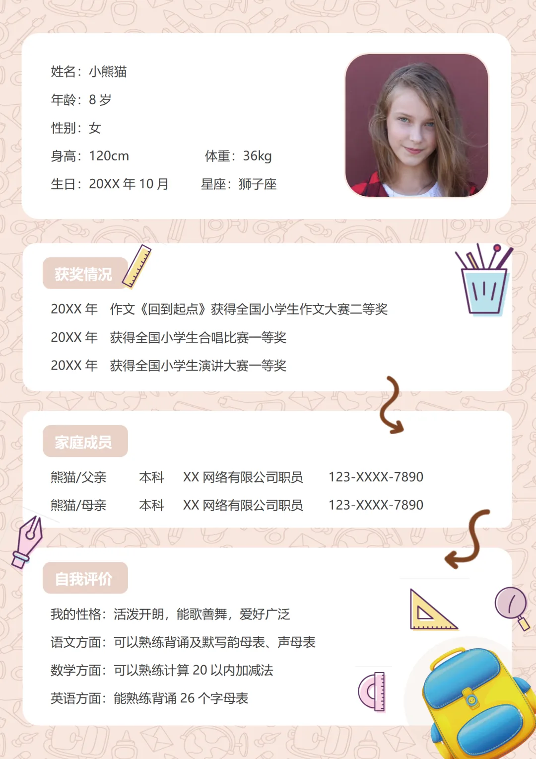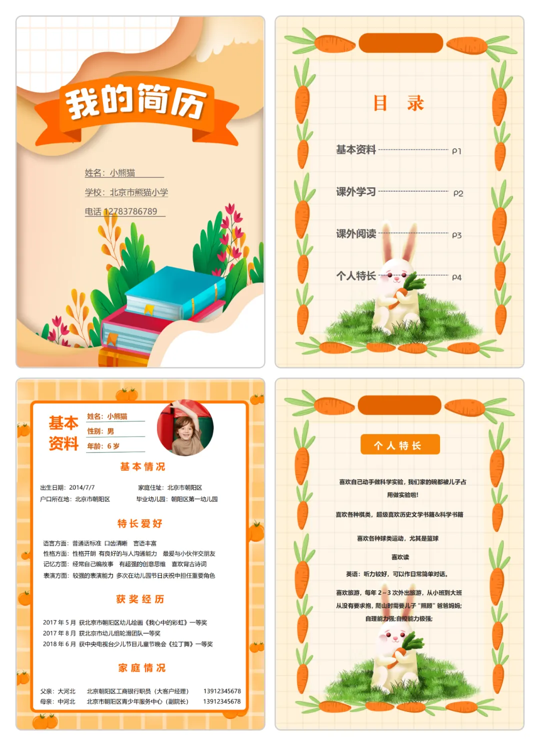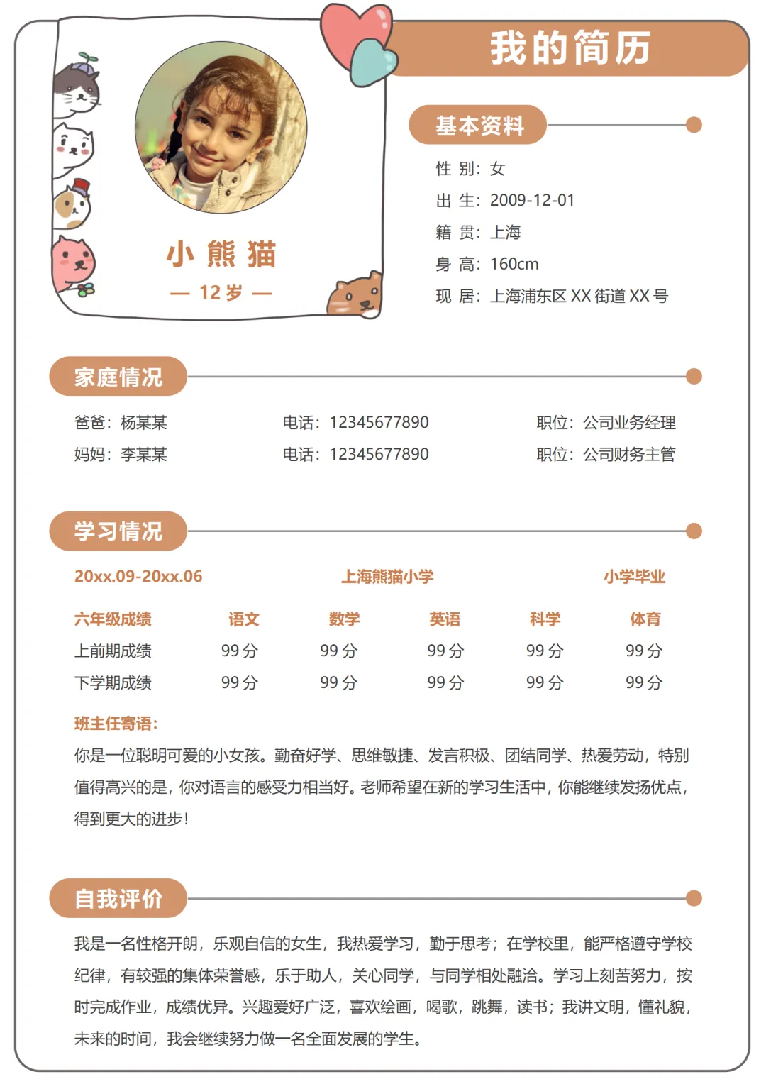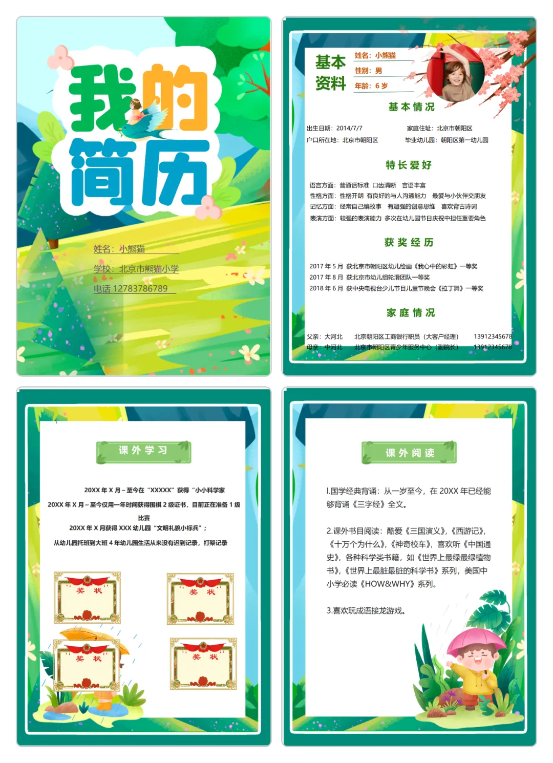 最新小升初简历模板word可编辑|包含多页和单页|免费分享
