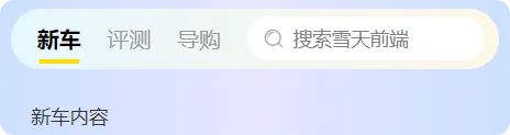 标准顶部 Tab,左侧文字切换,右侧带搜索图标 + 更多图标,渐变柔和背景,适合资讯、首页等通用场景。
