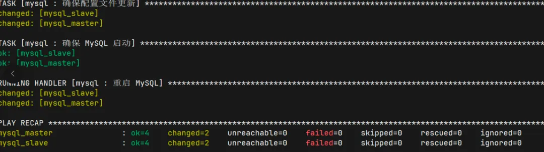 roles/mysql/tasks/main.yml):- name: 更新MySQL配置ansible.builtin.template:src: my.cnf.j2dest: /etc/my.cnfnotify: 重启MySQL- name: 确保MySQL运行ansible.builtin.service:name: mysqldstate: startedenabled: yes
