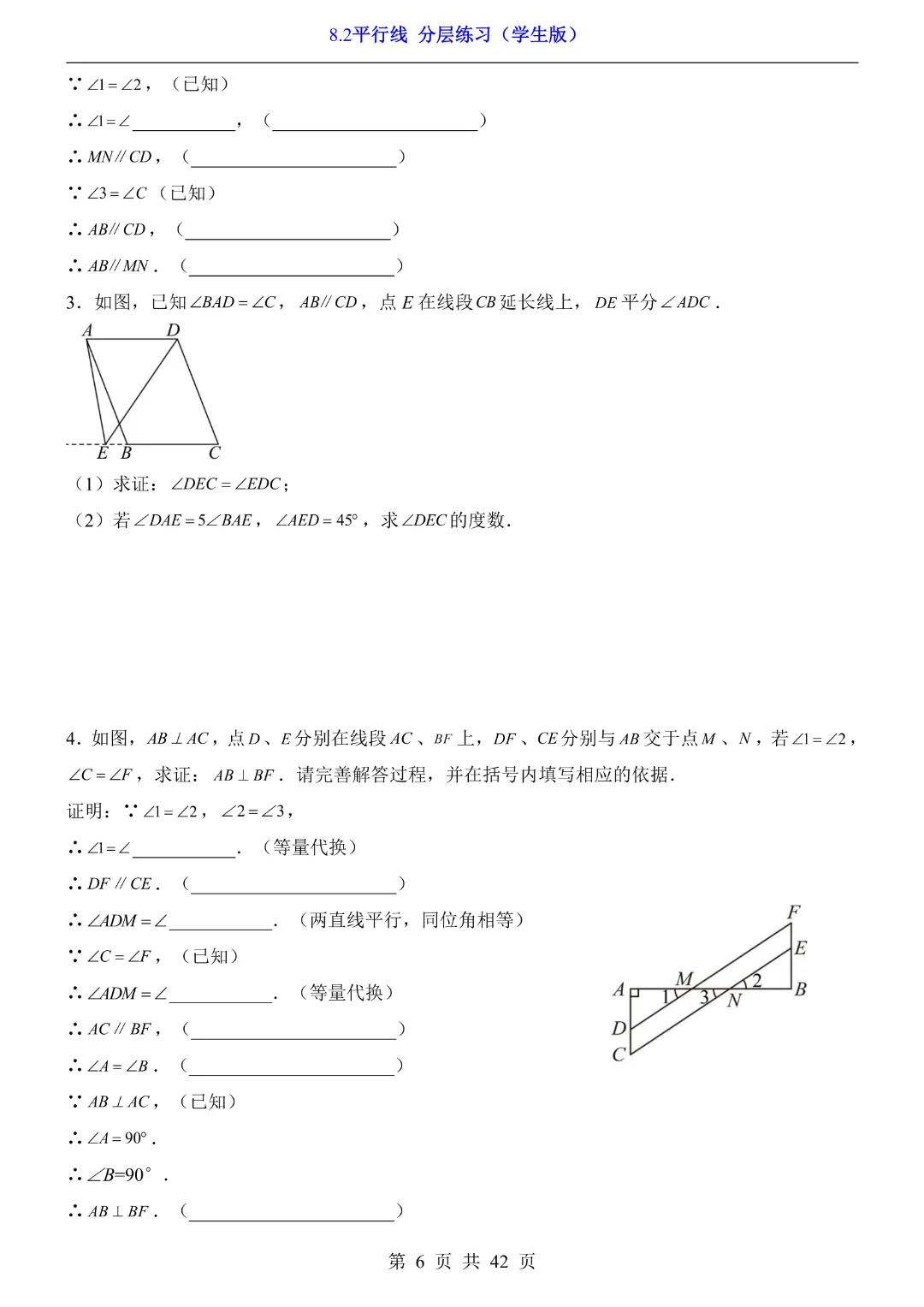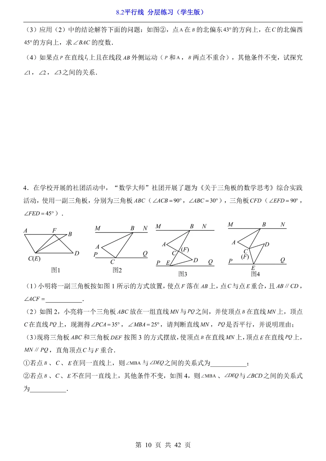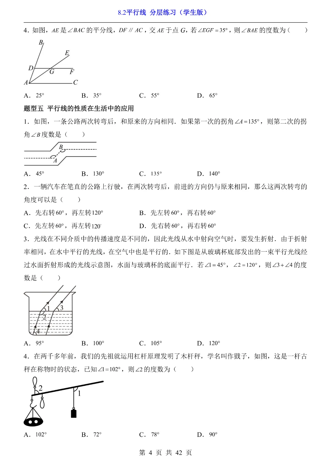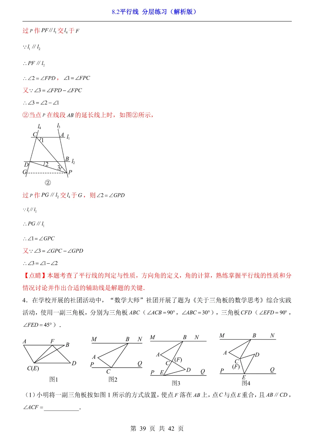 【七年级下册数学】【青岛版】8.2平行线 分层练习附解析 40页-高清电子版可打印