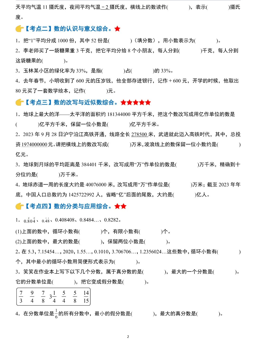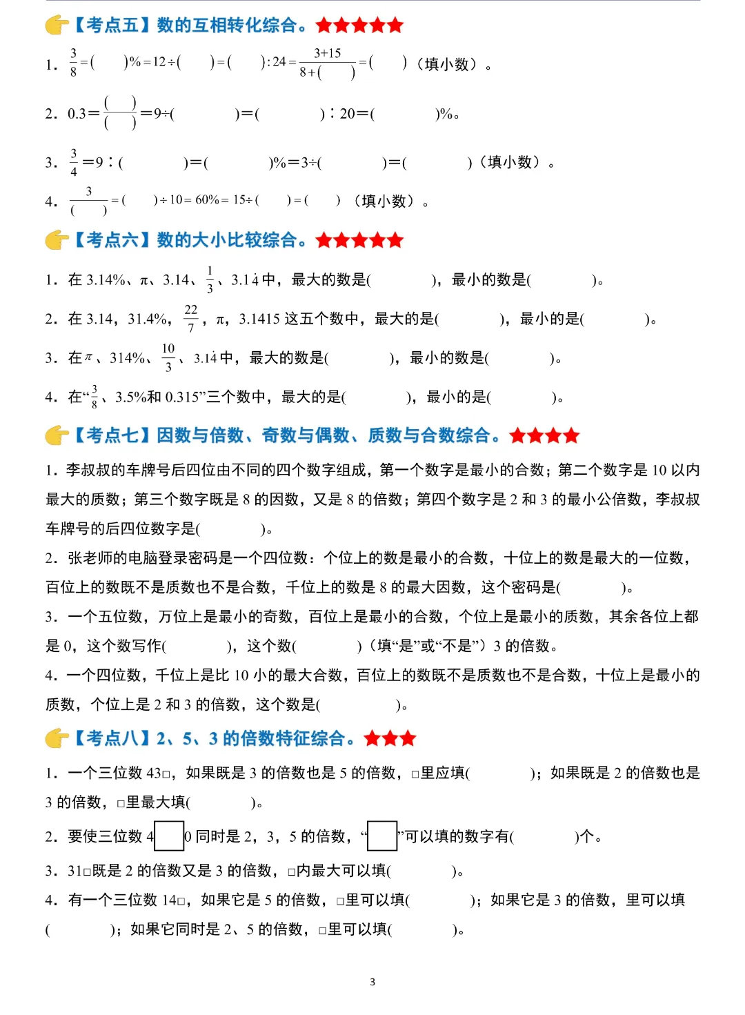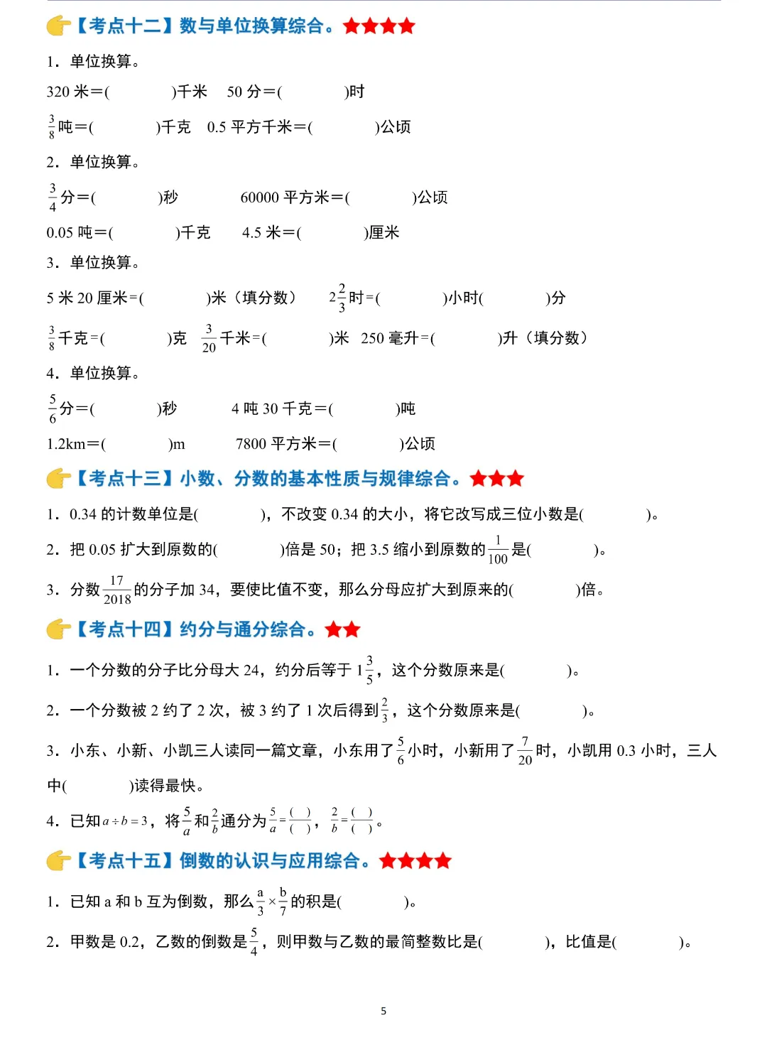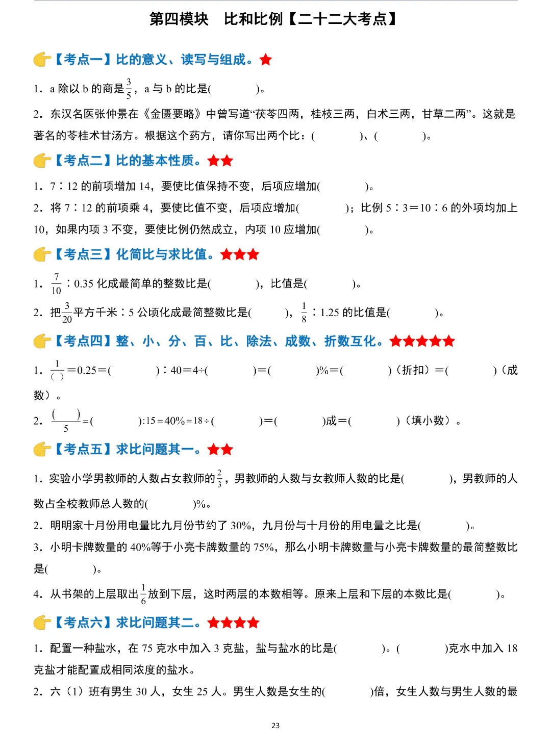 小升初数学模块综合复习259个考点练习版,含答案解析,电子版可打印